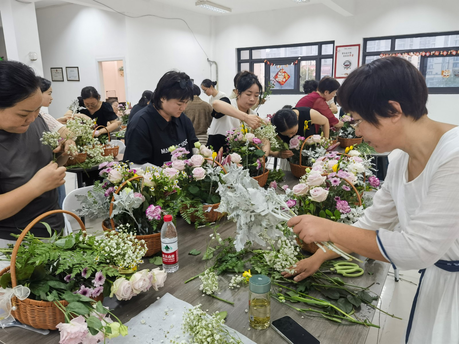 “五朵玫瑰,一朵百合,雏菊几多呀?”9月29日下午,一场名为“花香四溢 港嫂有约”的插花活动如同一朵盛开的鲜花在梅山成校教学点咏梅社区党群服务中心绽放。