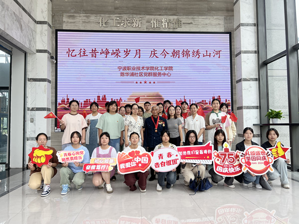 929日下午,陈华浦社区走进共建单位宁波职业技术学院化工学院开展庆祝新中国成立75周年活动,邀请了社区抗美援朝93岁老兵蒋纪棠为青年学生讲述当年抗美援朝保家卫国的革命故事,开展生动党史教育,厚植青少年爱党、爱国、爱社会主义的情感,让红色基因、革命薪火代代相传。