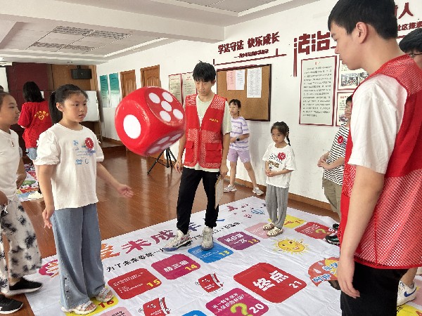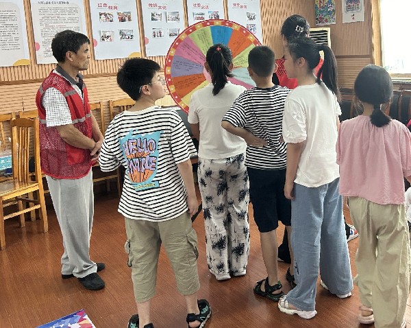 活动分为问卷答题、“大富翁”和“大转盘”三个部分。活动首先由“问卷答题”拉开序幕,孩子们被分成多个小组进行答题,在紧张的答题中,既感受到团队合作的乐趣,又逐渐了解了未成年人保护法的相关知识。接下来,活动进入“大富翁”游戏环节。这一环节在一个巨大的棋盘上进行,每个格子都设有以法律知识为主题的挑战任务。孩子们通过掷骰子前进,并在不同的格子上回答问题或完成任务。这些特定格子模拟了现实生活中可能遇到的违法行为,如校园欺凌、网络暴力等,让孩子们在游戏中亲身体验到法律的重要性,增强了他们在面对这些问题时的应对能力。最后是“大转盘”游戏环节,参与者轮流上前转动转盘回答问题,转到的问题则是与未成年人保护法密切相关的知识。这种新颖有趣的互动形式不仅提高了他们参与积极性,还让他们在轻松愉快的氛围中加深了对法律知识的记忆和理解。
