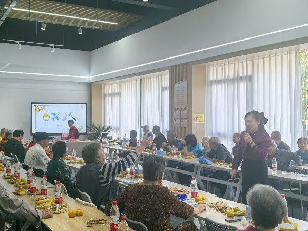 “临近重阳节,我在这里祝各位老人节日快乐!”活动伊始,主持人用温馨的节日问候拉开了序幕。随着一声声诚挚的祝福,现场气氛逐渐热烈起来。随后,主持人引导老人们开始了猜红歌的游戏。当一段段熟悉的旋律响起时,老人们积极参与其中,或轻声吟唱,或相互讨论,共同怀念起往日的美好时光。互动游戏环节更是让老人们乐在其中脸上洋溢着幸福的笑容,传递出无尽的快乐和活力。参与其中的李奶奶激动地说:社区今年的重阳节活动太丰富了,能和老伙伴们一起玩,真是太棒了!在游戏中,老人们不仅增强了彼此的交流,更加深了这份珍贵的友谊。