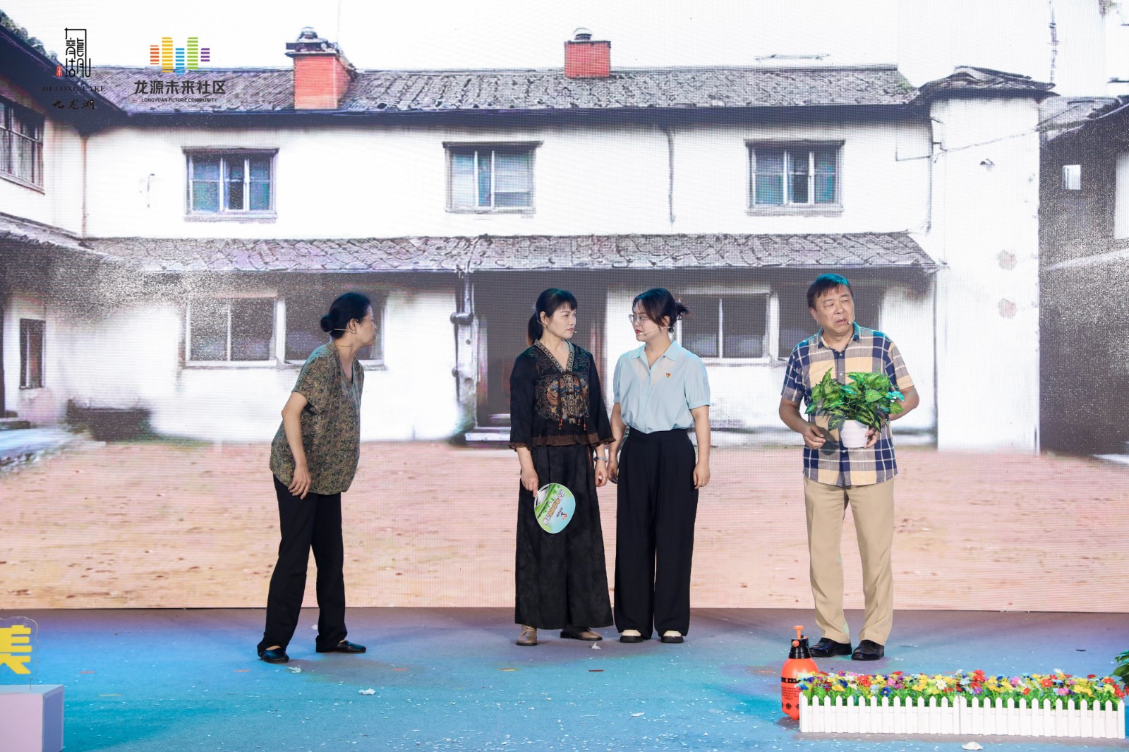 浪漫金秋,花香四溢。时值祖国75华诞,为弘扬和培育社会主义核心价值观,增强广大居民爱社区、爱祖国的家国情怀,思源社区思远文艺队登台献演情景短剧《花开忘忧》。由社区基层工作者和居民们围绕社区垃圾分类、美丽庭院、邻里和谐、新时代婚育文化等专项工作,通过对邻里共用“杂物地块”成功改造成花开忘忧共享庭院的典型案例,将社区治理中的实际问题和解决方案生动地表达出来,诙谐演绎居民区里的“平常事”,创新地展现社区微治理的智慧和勇气,让居民在笑声中思考,在感动中共鸣,不断提高居民的获得感、参与感和幸福感。