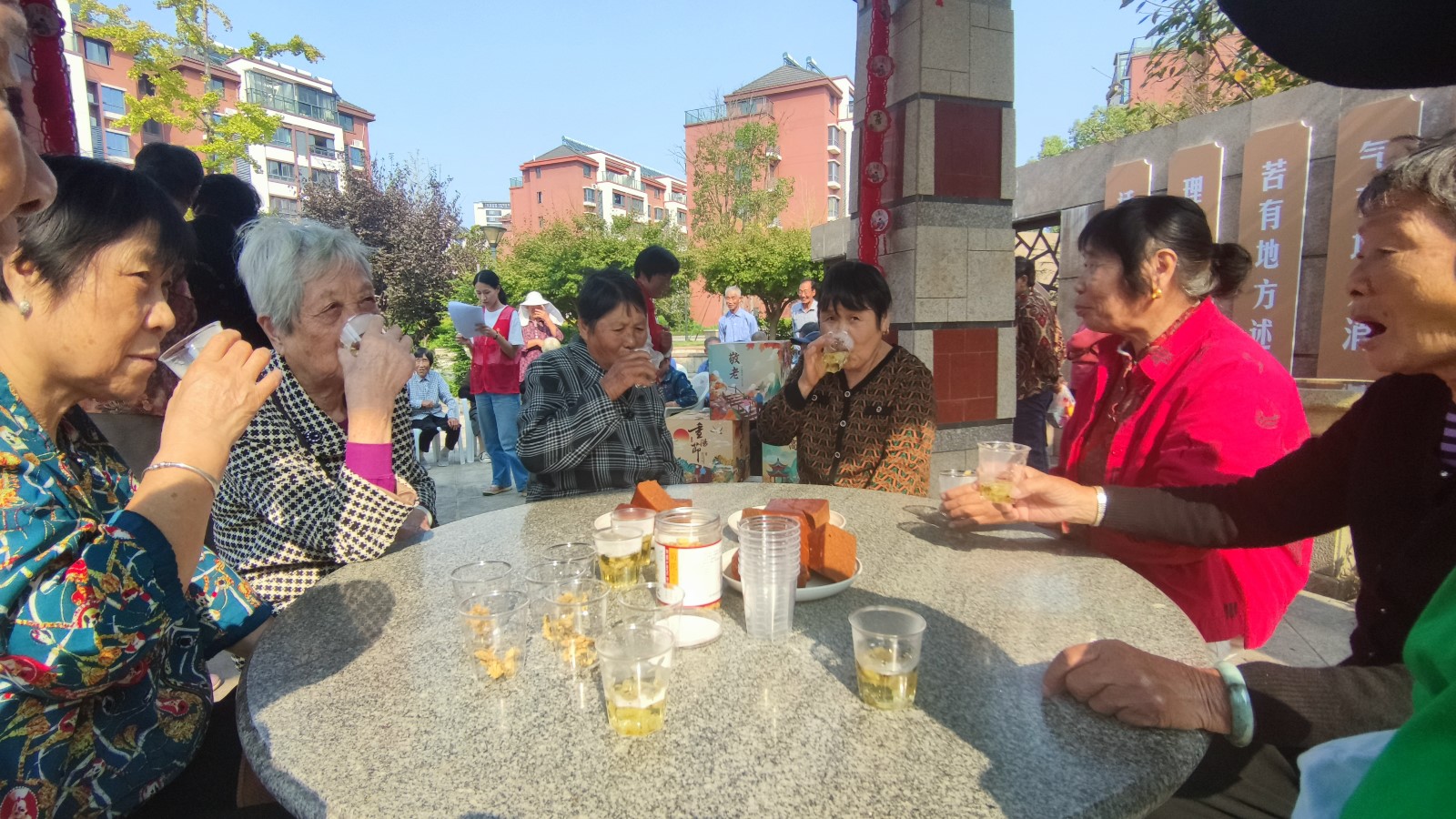 “古时人们一般会在重阳登高或登山,还会踏青赏菊……”活动伊始,工作人员向社区老人讲述了重阳节的起源和习俗,并结合身边感人事迹,进行了孝老爱亲传统美德的宣讲。期间,网格志愿者为老人奉上重阳糕和菊花茶,并祝全体老人在社区生活的每一天,幸福健康,安度晚年。
