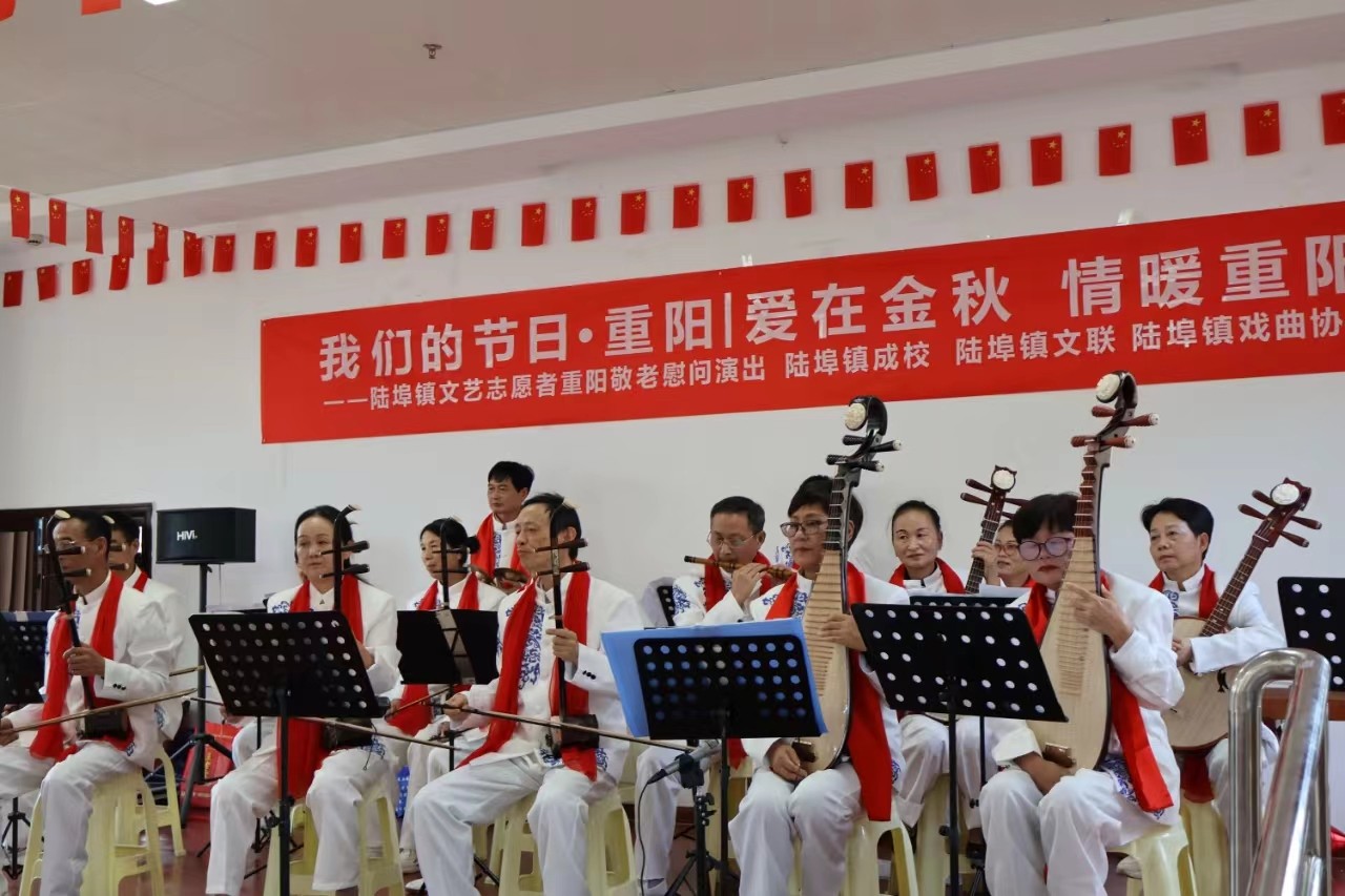 重阳佳节来临之际,109日,陆埠镇成校联合镇文联组织、镇戏曲协会、镇天马民乐团等团队的文艺志愿者们,走进陆埠镇康芮家园(老年人服务中心),向老人们献上了一台精彩的戏曲演出。