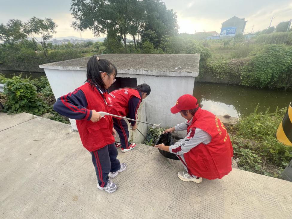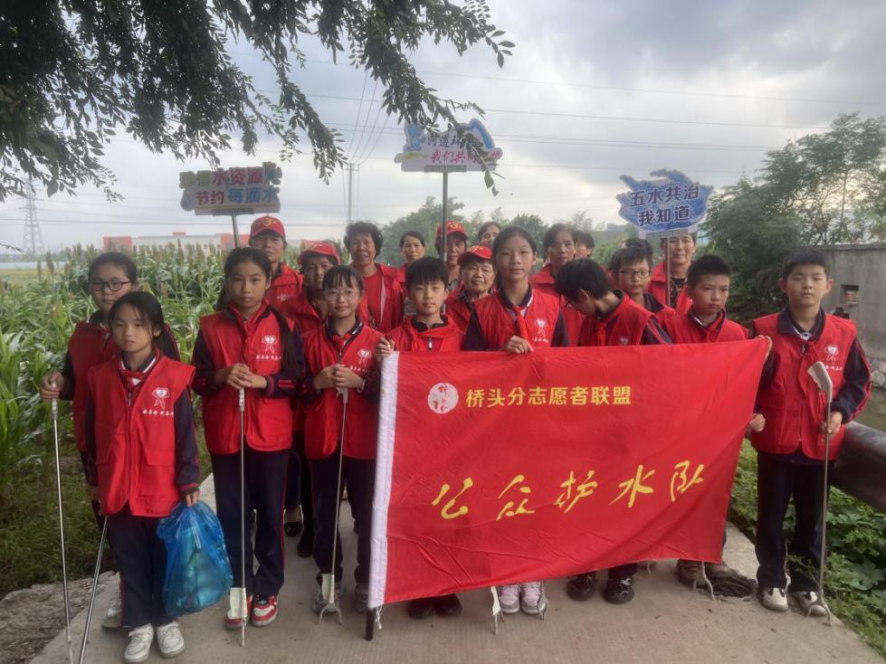 桥头镇实验学校学生在镇村志愿者带领下来到毛三斢村余家江开展巡河活动。学生们热情高涨,手持垃圾袋、钳子等工具对沿岸河畔的垃圾进行清理。