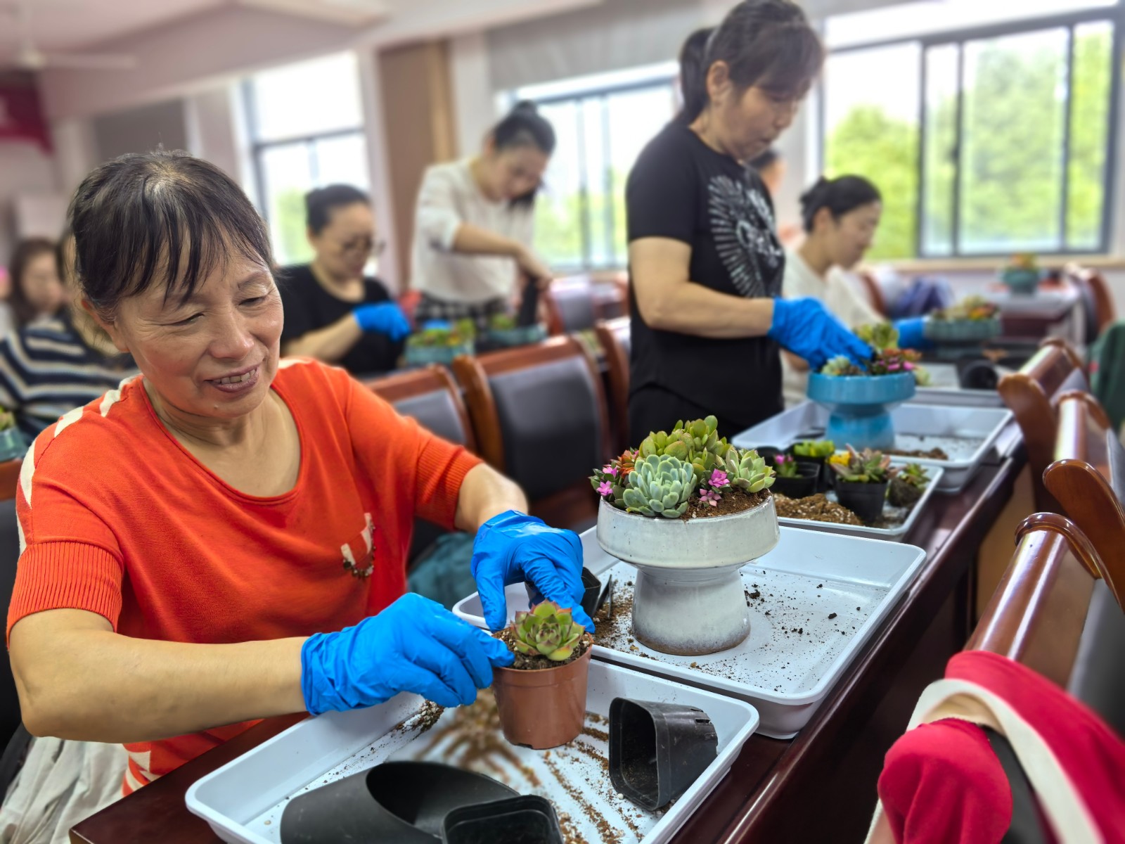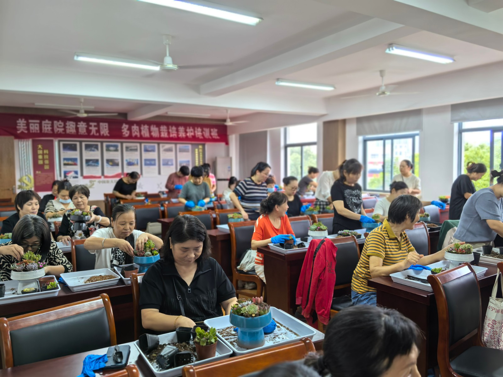 21日,骆驼成校举办了骆驼街道“美丽庭院趣艺无限多肉DIY”园艺培训活动,本次活动共有35名女性居民参加。