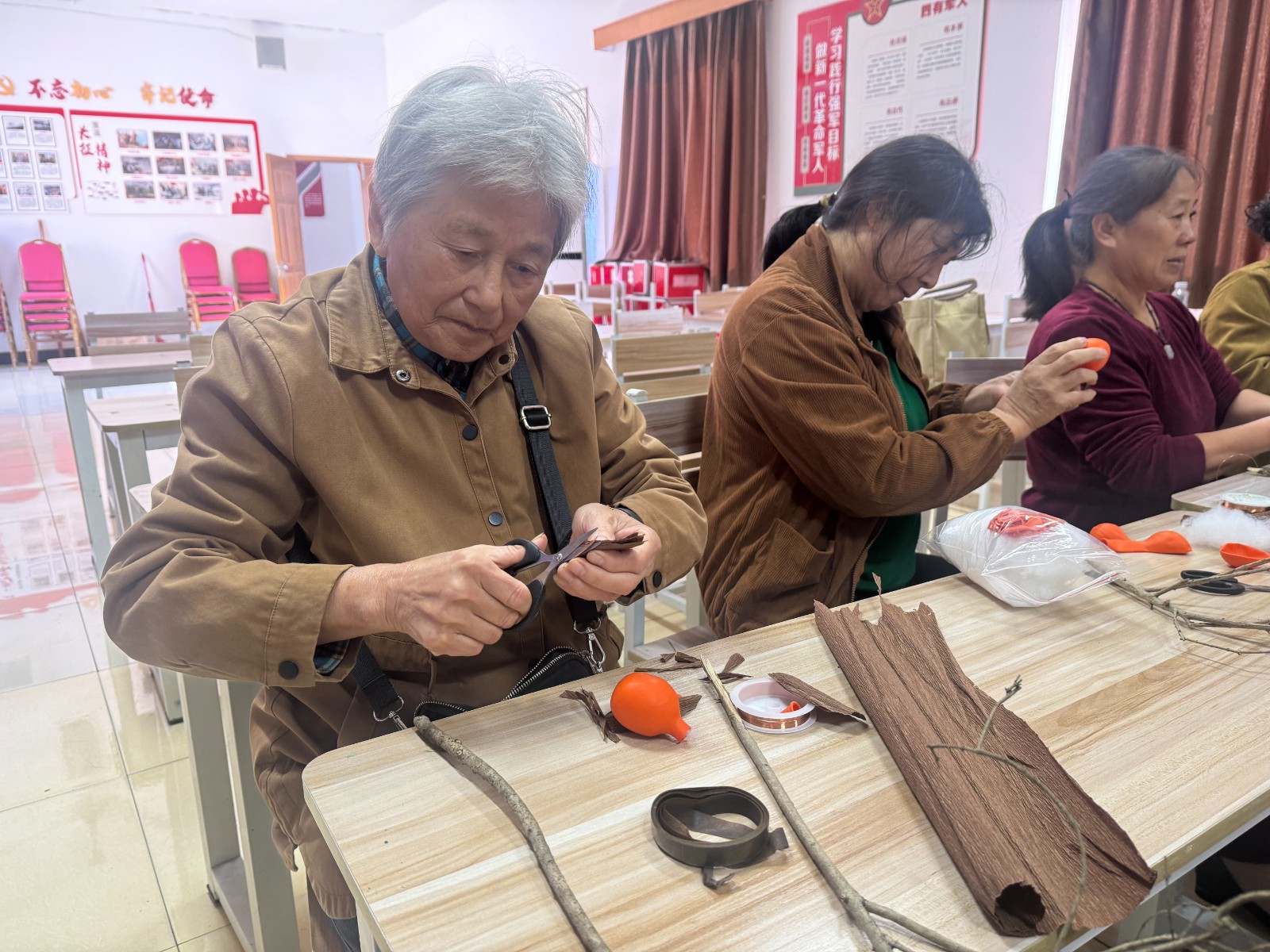 柿子在中国传统文化中象征着吉祥和顺利,而“柿柿”如意则寓意着事事顺心、如意吉祥。活动开始时,老师向大家介绍了霜降的习俗和养生知识,让大家对这个秋天的节气有更深刻的认识。之后,巾帼志愿者将本次手工制作需要的材料包分发给大家,在老师的指导下开始“柿柿”如意的制作,活动现场,大家互帮互助、相互交流制作技巧和心得,最终每位参与者都成功亲手制作出了属于自己的“柿柿”如意,大家纷纷表示这份手工品既漂亮又有深意,摆放家中不仅可以增添一抹亮色,更能将这份美好的祝愿分享给家人们。