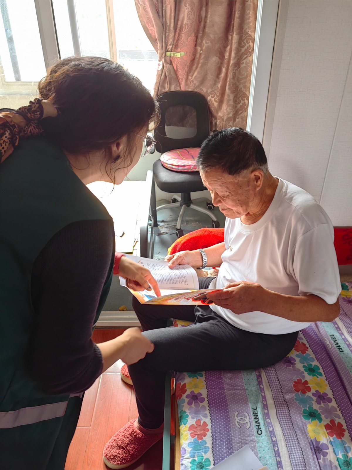 “奶奶,地面防滑,卫生间增加扶手等这些都可以改造。”针对辖区部分高龄、独居、残疾老年人等特殊困难群众,社区网格员进行入户精准宣传,面对面询问了解老人的改造需求,进行详细的政策介绍、答疑解惑重点围绕适如厕洗澡安全,室内行走便利,居家环境改善,智能监测跟进,辅助器具适配内容进行解读,用通俗易懂的语言,结合宣传彩页,解答老年人的疑问。