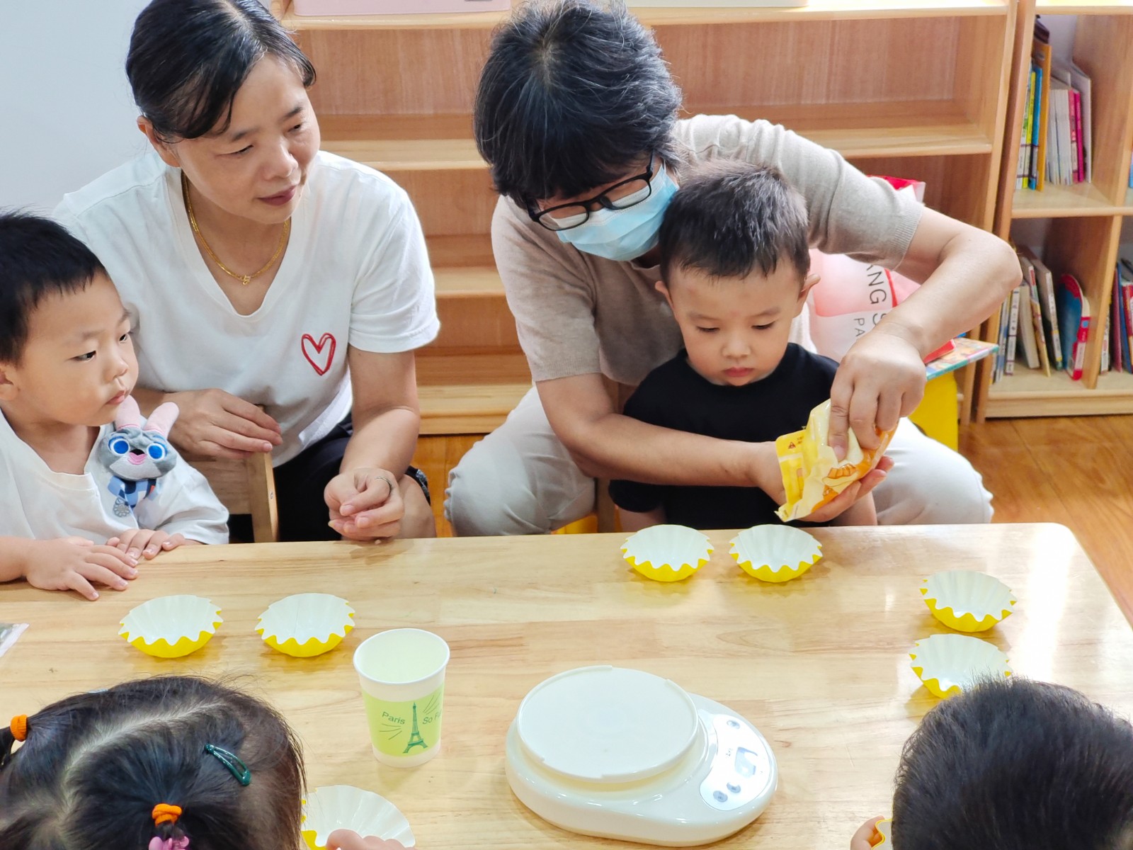 网格员活动通过“秋之味”、“秋之色”、“秋之感”三个环节,吸引着孩子们不断去探寻感受秋天的美好。8组亲子家庭先是共同制作板栗玛芬蛋糕制作将所有材料混合后孩子们开始了开心的捏捏环节,随后将面糊挤入蛋糕杯中送入烤箱烤制。等待的时候网格员用照片和实物相结合的方式带领亲子家庭进行了秋季植物认知随后网格员为每位孩子分发了干花书签材料,进行制作。随着烤箱“叮”的一声,香喷喷的蛋糕出炉了,亲子家庭共同品尝属于秋天的独有味道。