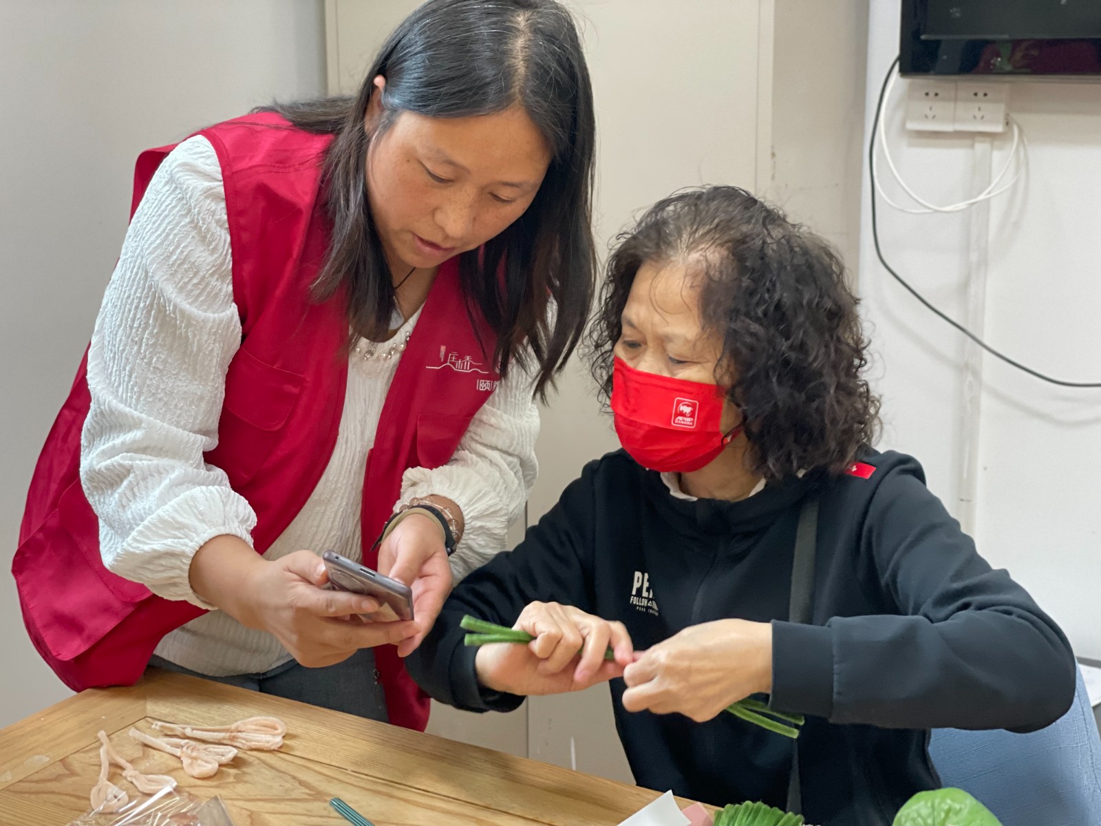 为丰富天水社区居民的退休生活,天水社区居家养老服务中心开展DIY扭扭棒花活动。