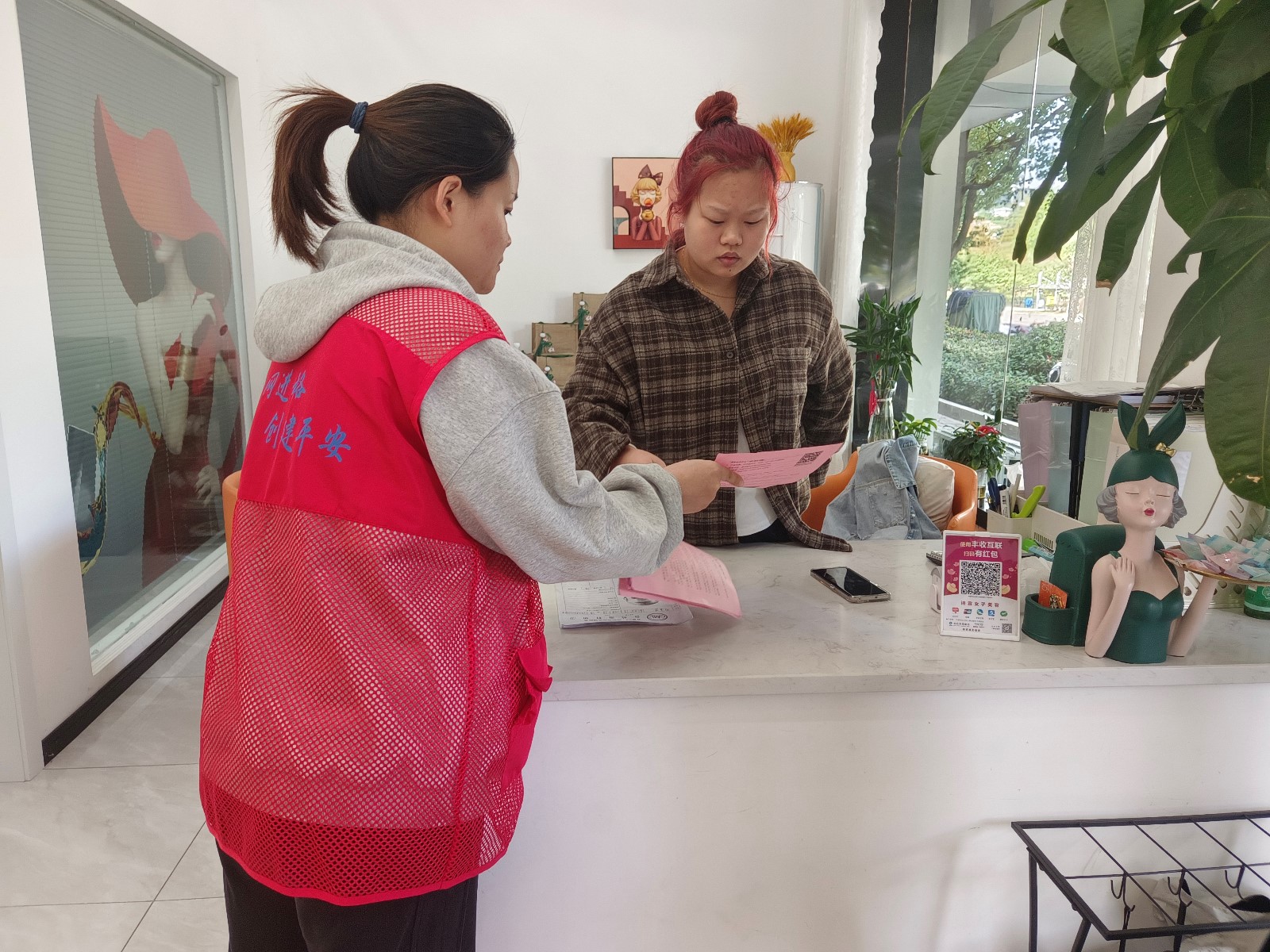 青墩社区社工与志愿者向居民和商铺开展有针对性的反诈宣传,主要围绕网络贷款、网络交友、诱导投资、冒充客服及公检法人员诈骗等典型案例开展宣传活动,通过案例分析对诈骗手法进行了剖析并讲述防诈知识,重点普及安全用卡常识,个人信息保护等知识。并叮嘱各村民代表向亲戚朋友大力宣传反诈,守护好自己的“钱袋子”。