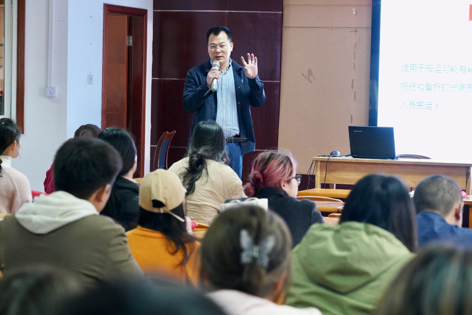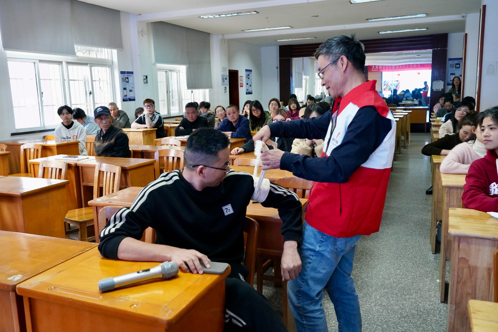 学员回到教室后,余姚市红十字会卢鸿救护师给全体学员及员工进行了情景式应急救护技能培训,重点培训了受伤后的止血、包扎、固定、搬运四个步骤的处理方法。卢老师讲解幽默风趣,生动形象,知识和技能传达效果良好。学员们都全神贯注地听讲,培训达到预期目的培训结束后,红十字会还为全体学员发放了急救包,人手一个,进一步增强了大家应对紧急情况的能力。