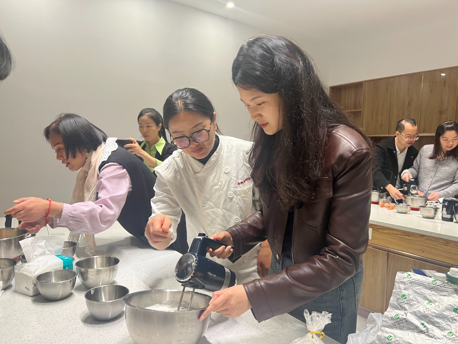 西式面点的第一课是制作纸杯小蛋糕,从分蛋黄蛋白到打发蛋白霜,再到挤面糊……学员在烘焙的过程中体验着无穷乐趣,教室里欢声笑语不断。品尝一口自制的小蛋糕,香甜可口,满足感油然而生。