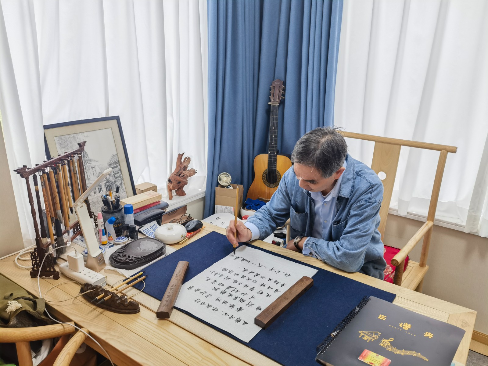陈孝作为万宁社区的资深党员,长期以来一直积极参与社区的各类公益活动,尤其在反诈宣传方面表现出色。他深知书法作为中国传统文化的重要载体,其独特的艺术魅力和深厚的文化底蕴能够吸引更多居民的关注,因此决定利用自己的书法特长,为社区的反诈宣传工作增添一抹亮色。在创作过程中,陈孝精心挑选了多条反诈宣传口号,如“防范诈骗,人人有责”、“天下没有免费的午餐,加强自我保护意识优先”等,这些口号简洁明了、朗朗上口,易于被居民接受和记忆。他运用自己精湛的书法技艺,将这些口号书写成一幅幅精美的书法作品,既有楷书的端庄稳重,又有行书的流畅自然,每一幅作品都蕴含着他对反诈宣传的深情厚意。