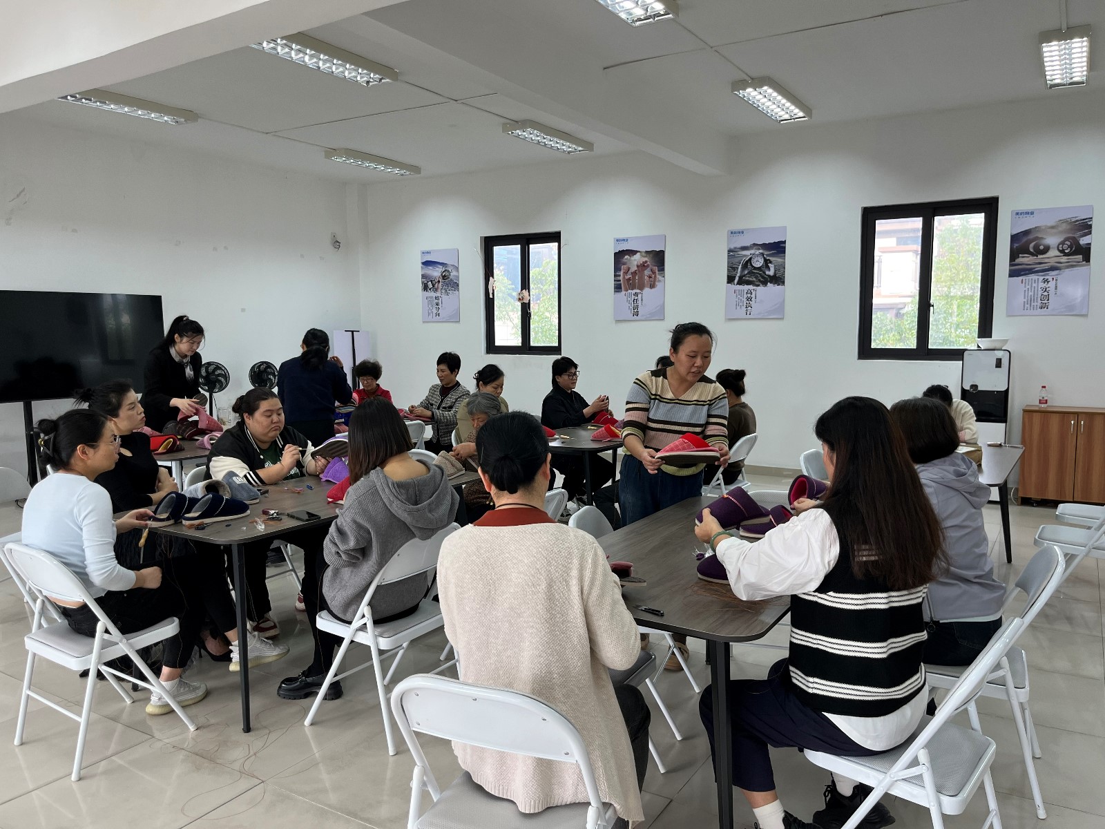 裁剪环节,只听 “咔嚓咔嚓”,剪刀在各种面料上欢快地奔跑,一块块形状完美的面料就诞生啦。穿针引线也趣味十足,有的港嫂手法娴熟,线就像听话的小蛇,“嗖”的一下就钻进了针孔;有的港嫂费了点劲儿,一旁的网格员见状也前来帮忙,那认真专注的模样真是可爱极了。缝合的时候,大家一边捏着面料,一边拿着针线,“眼瞅着就要入冬啦,这拖鞋呀来的刚刚好!”港嫂你一言我一语的感叹到,“是啊,咱这回学会这手艺,这个冬天脚可暖和了。”一双双即将在她们手中诞生的拖鞋,就像是抵御寒冬的小小卫士,给单调的冬日增添了几分活泼与温馨。