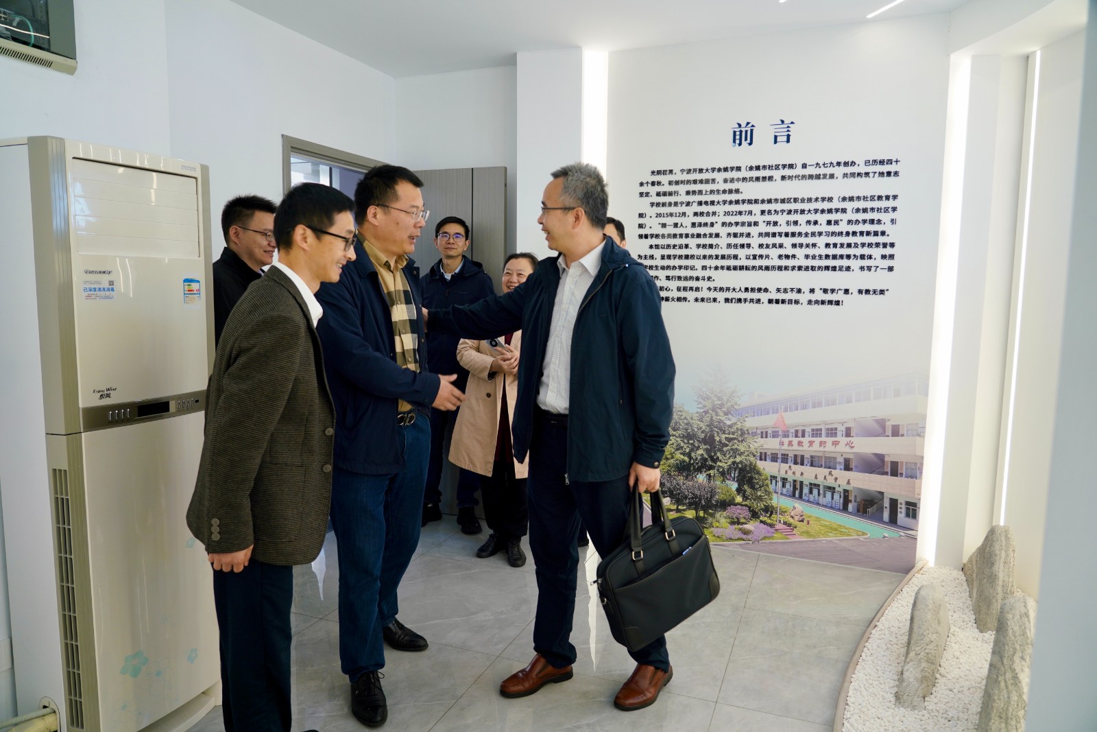 调研组先后参观了学院的校史馆和数智生活体验馆,对学院近年来展现出的创新成果与积极变化赞叹有加。