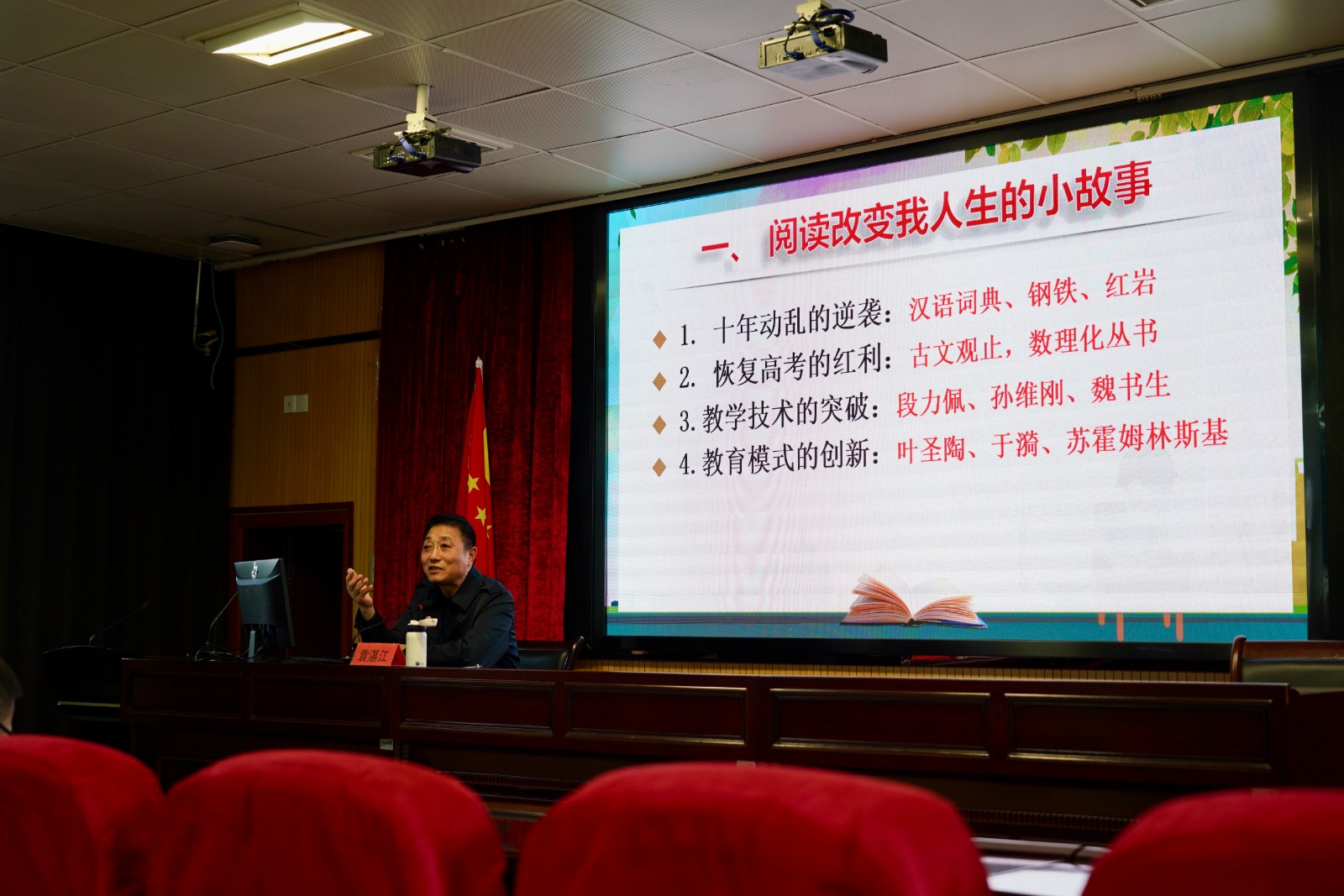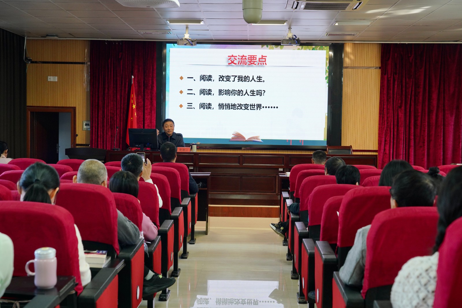 袁教授分享了阅读对他人生的改变:小时候看《汉语词典》《钢铁是怎样炼成的》《红岩》,让他在动荡年代奠定逆袭基础;古文观止、数理化丛书助他在高考中获益;段力佩、孙维刚、魏书生的著作给他突破教学技术带来灵感,叶圣陶、于漪、苏霍姆林斯基的书籍对其创新教育模式影响深远。他通过提问“阅读影响你的人生吗”与听众互动,多名教师结合自身经历讲述了阅读在工作、生活中的影响,以及阅读体验和收获,现场气氛热烈。最后,袁教授以“阅读悄悄改变着世界”为结尾,结合当下网民沉迷“刷视频”的现象,强调倡导阅读的重要性。
