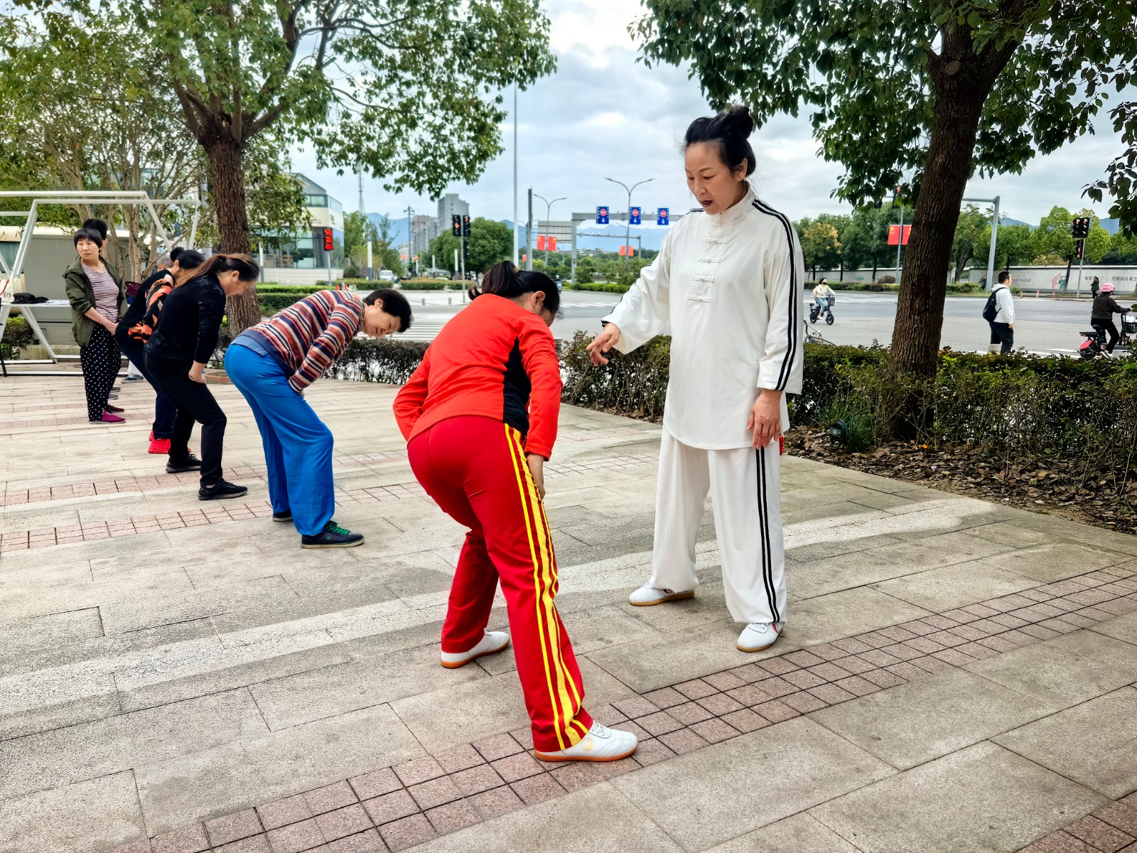 调整呼吸,双臂缓缓抬起,慢慢屈膝,掌心外旋……每逢周二、周四,天气晴朗的日子,碶上集·岩河里的小广场上总会准时出现叔叔阿姨们的身影,他们身着轻便的运动装,在国家级一级社会体育指导员邱静芬的带领下,认真练习着八段锦。在课程中,邱老师不仅教授了八段锦的基本动作,还向大家介绍了八段锦的健身原理和注意事项。