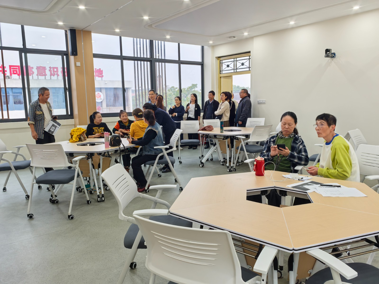14日下午,适逢慈城镇成校(慈城镇老年学校)社团日活动,研修班成员饶有兴趣地观摩了抖音视频制作培训课程、电子琴弹奏社团两个社团活动,对这样有特色的社团日活动赞不绝口。当看到电商直播培训室、艺术培训室、共富学堂、城市书房等高标准的教学设施配备,研修班成员纷纷竖起了大拇指。