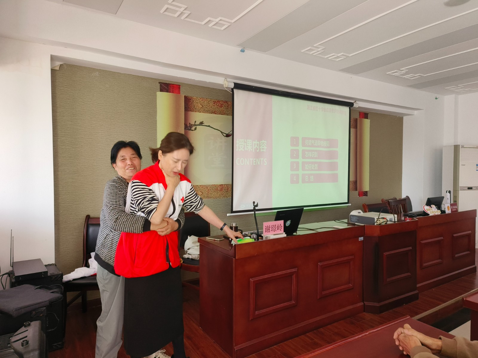 11 月 17日,思源社区妇联特邀红十字会讲师谢璟岭,为社区老年居民开展气道异物梗阻应急处理培训。
