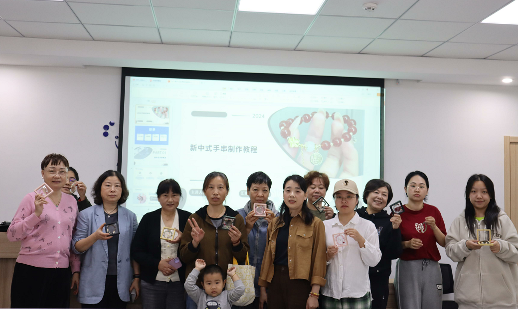活动现场,网格员讲解了新中式手串的概述,围绕新中式手串的制作技巧、色彩搭配等内容进行精心指导。在网格员的指导下,居民们根据自己的喜好挑选所需的珠子和配饰,按照“开始串珠,添加配饰,调整长度和布局,收尾打结”等步骤,很快一串串各具特色的新中式手串便制作出来了。活动最后,现场的阿姨们手拿各式各样的漂亮手串,开心地合影留念,记录下今天这一份独一无二的美。