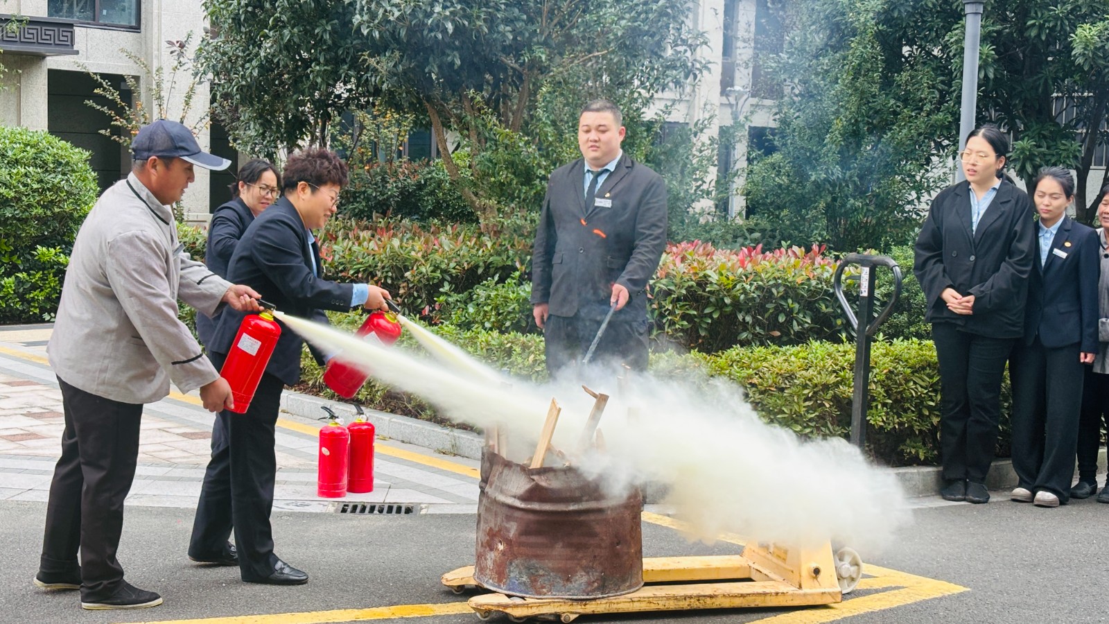 社区网格员为参与人员现场讲解灭火器的作用、使用方法以及在遭遇火灾时应该怎样避险逃生,重点对如何正确使用灭火器扑灭火源进行演示教学。在他的指导下,大家纷纷拿起灭火器学习灭火操作。