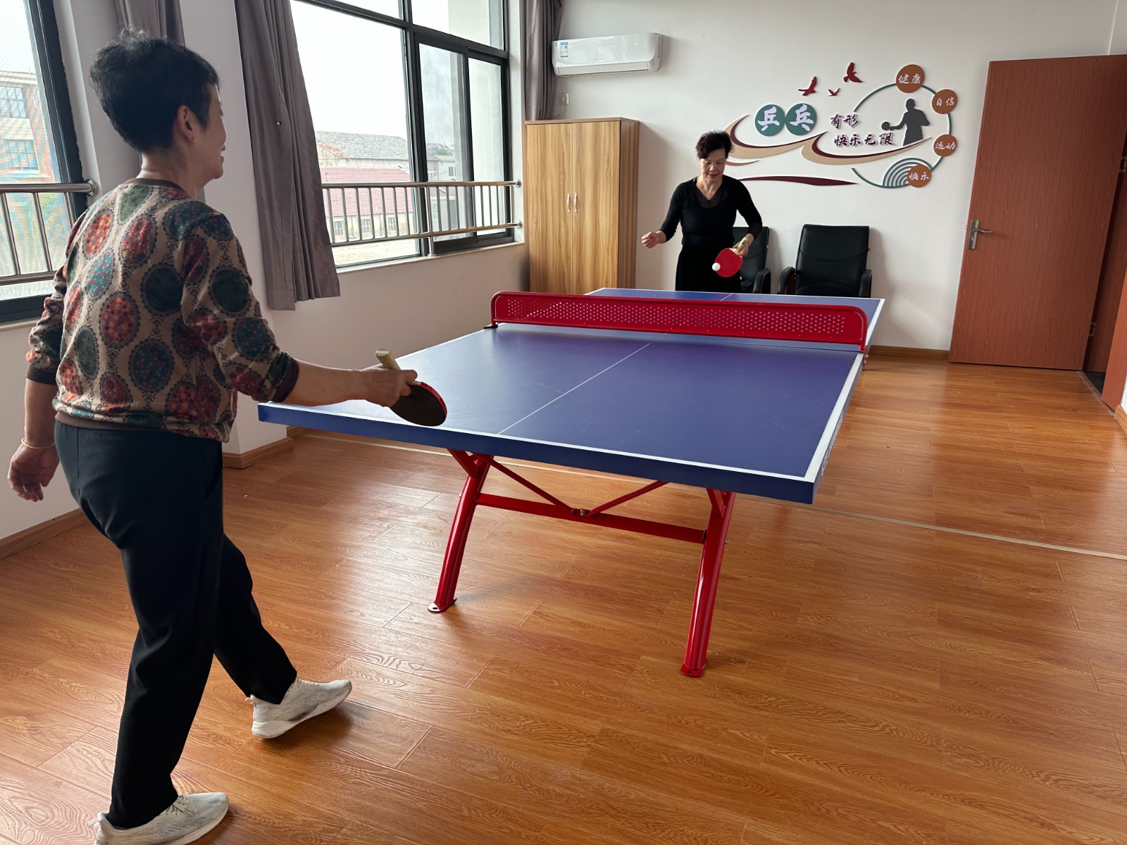 文体活动以花样多、参与度高、运动量小为特点,结合老年人身体状况设置了四个项目:门球、乒乓球、跳棋以及花样腰鼓运动。河东社区门球尤其受到老年人的喜爱,不仅有助于锻炼身体,还能促进脑力运动,通过走步和击球动作,门球能够锻炼臂、腿、腰等部位,促进全身运动,在锻炼身体同时也需要动脑用心,该运动也有助于调解情绪磨练性格。河东片区日间照料中心升级改造后新增的乒乓室,室内居民热情高涨,以球会友强身健体,小小的乒乓球上下翻飞,切磋技艺、拓展交际。除此之外,河东社区腰鼓队的阿姨们,在秋日铿锵有力的挥舞鼓棒,运动的热情感染着老年居民朋友们,既增进了邻里感情,凝聚了人心,也提高了辖区居民参与体育运动的热情。