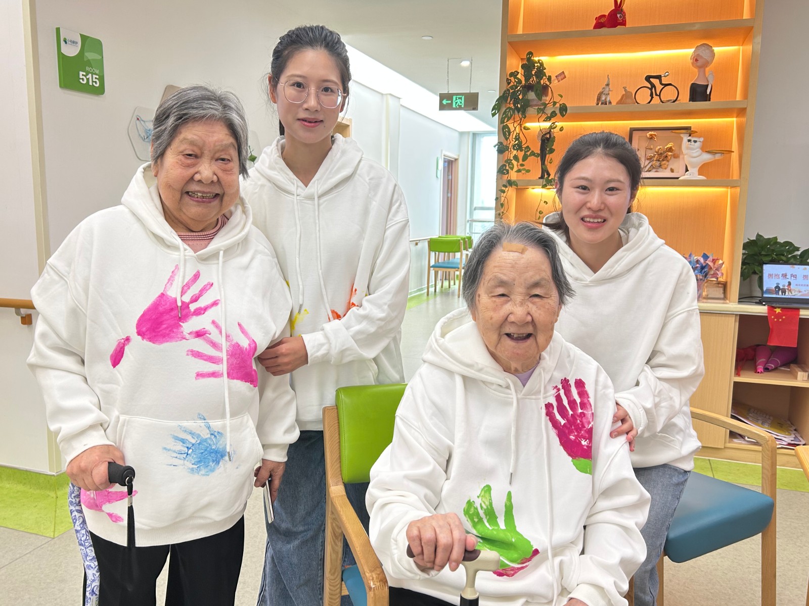 在创作过程中,网格员葛雪雪为老人送上重阳节的祝福,而那些被手印点缀的卫衣,则成情感的载体,记录着这个重阳节的美好时光,也见证了我们和老人之间深厚的友谊与亲情,将此刻的记忆定格成了永恒。