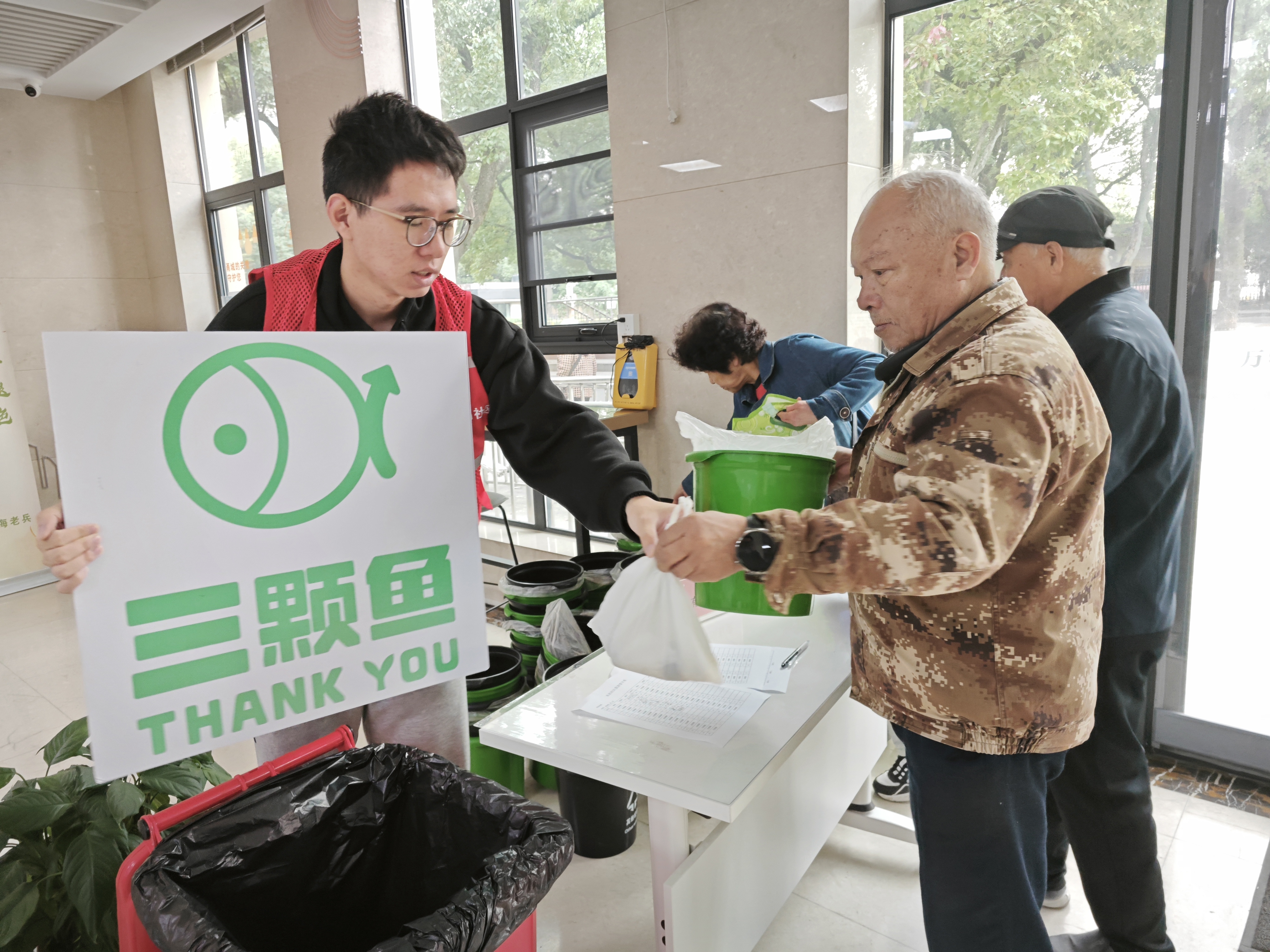 活动中,居民们把从家中收集的有害垃圾,如废旧电池、过期药品、废弃灯管等带到现场,有序排队进行兑换。网格长耐心地为每一位居民清点、记录有害垃圾的种类与数量,并为他们兑换相应的礼品。整个兑换过程井然有序,充满了温馨与欢乐。活动现场还融入了“三颗鱼”旧物循环商店品牌推广,向居民宣传旧物循环利用理念。