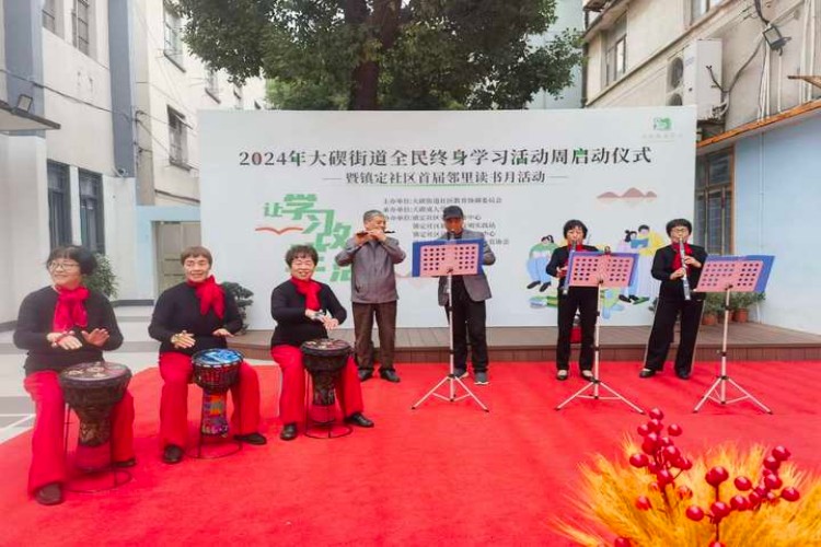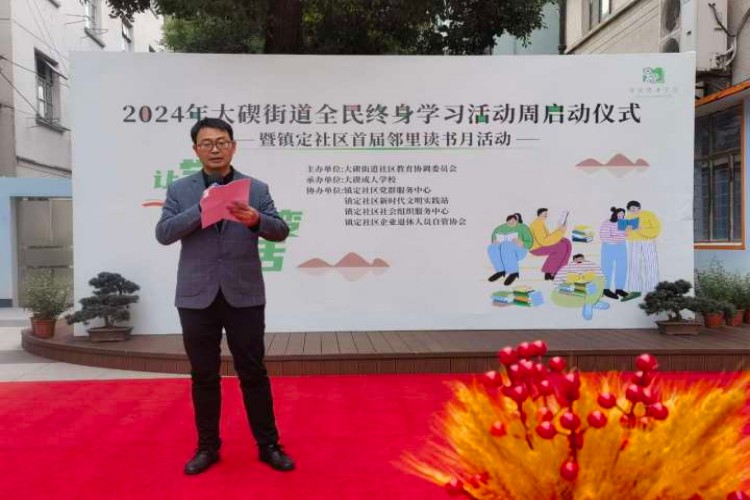活动在悠扬的鼓乐声中拉开帷幕,镇定社区党委书记邹凌云在致辞中表示,阅读在文化传承、个人成长和社区建设中有着重要作用。并特别提到将老年群体纳入读书月活动,鼓励大家打破年龄界限,促进代际交流,共同享受阅读的乐趣。