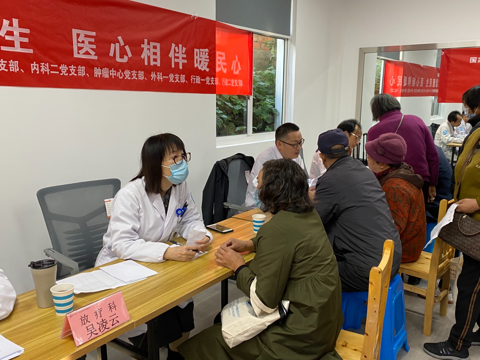 讲座一结束,义诊活动马上开始,医护人员先为会员们提供血压测量、血糖检测和心肺听诊等各项医疗服务,紧接着来自浙一医院、县第一人民医院医健集团的放疗科、肿瘤科、中医科等专家对有需求的会员一一仔细问诊,为会员们解决各种抗癌疑难杂症,也为他们提供心理支持和积极鼓励。专家们根据会员们的身体状况给出个性化的医疗建议和后续治疗方案。