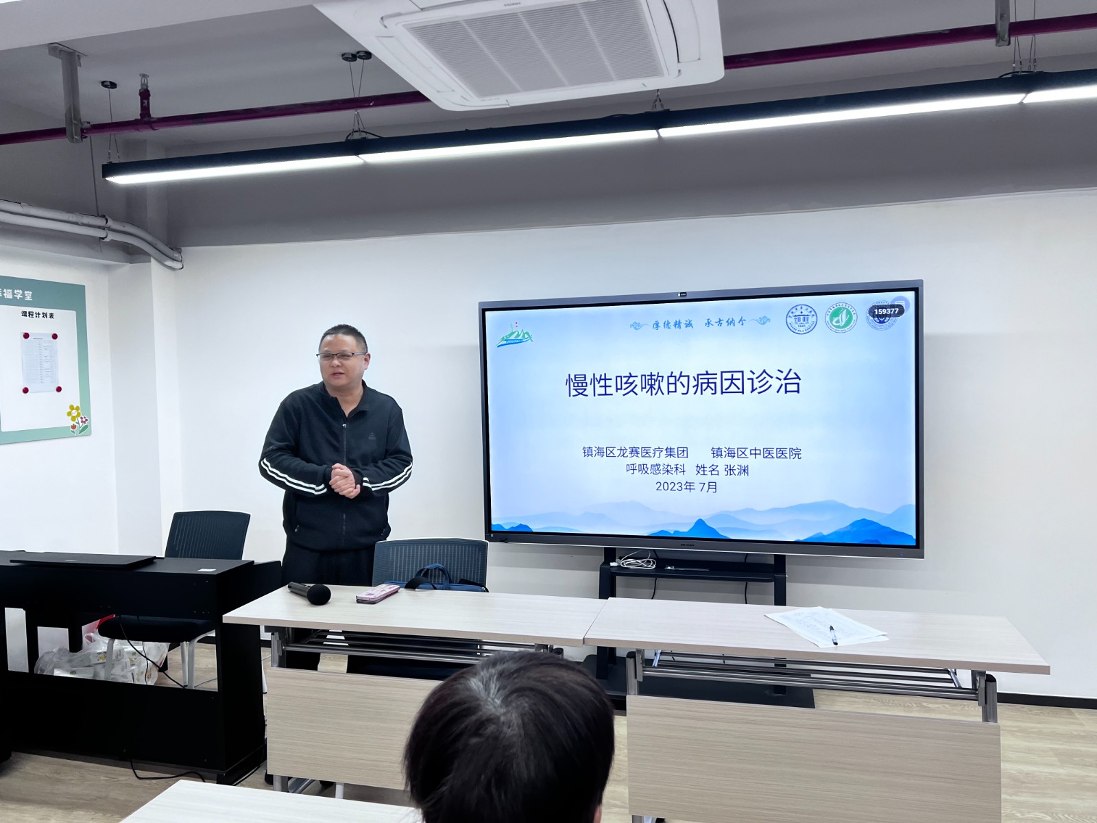 1122日下午,青枫社区成功开展了主题为“咳嗽不是病,咳起来要命一一慢性咳嗽的病因诊治’的知识讲座,主讲人为镇海中医院呼吸科的资深医生张渊张医生,此次讲座吸引了很多对慢性咳嗽问题感兴趣的居民,尤其是老年群体。