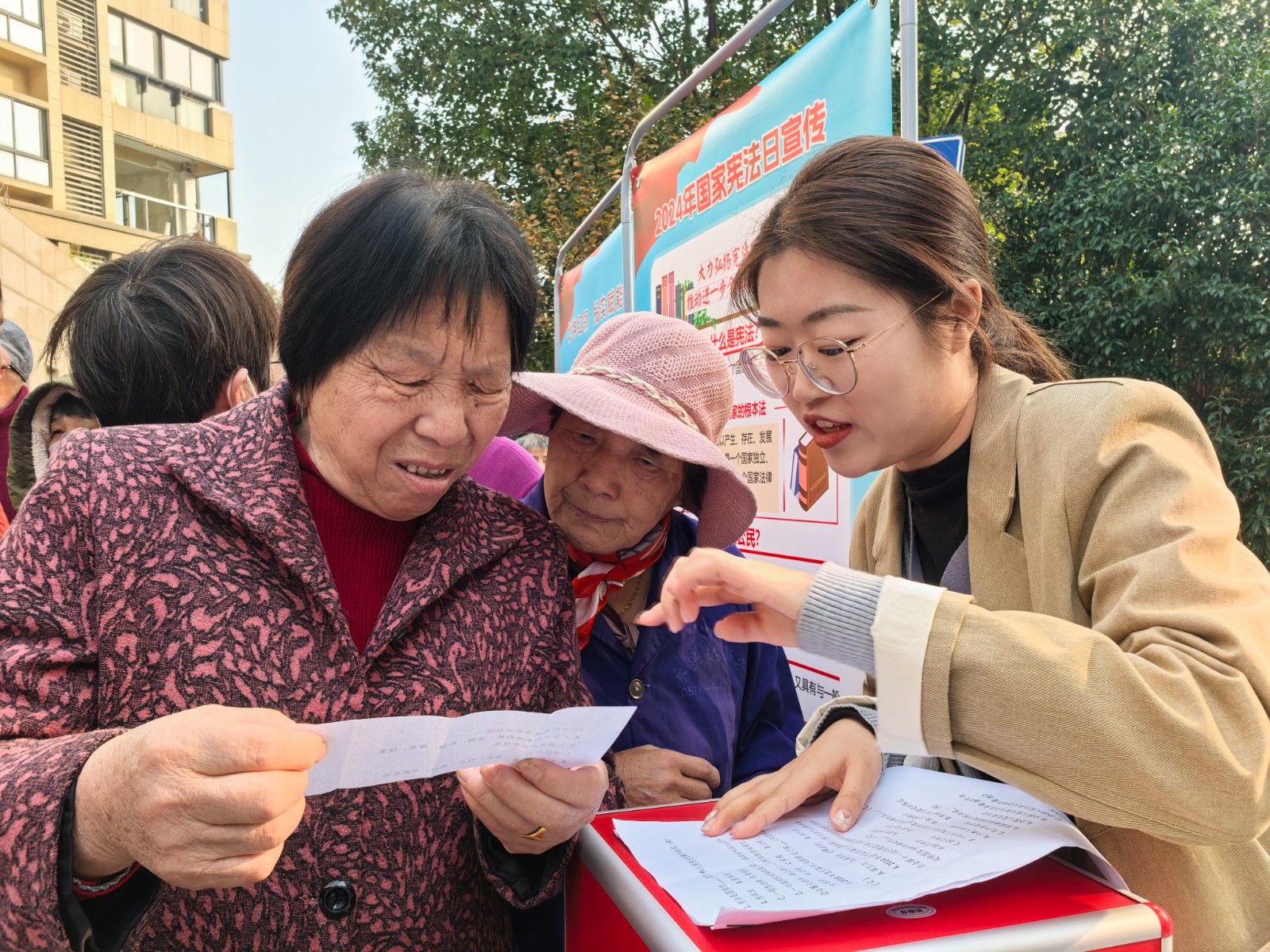 同时,天悦社区邀请了结对单位北投公司资深的法务团队来到社区老年活动室外,开展了一场宪法宣传普法教育活动现场摆放了许多精美制作的普法展板,向居民们展示了生活中常用的法律知识。区人大代表周海明和何婷婷两位同志以“宣传员”的身份,一边向分发宣传手册,一边围绕群众关心的婚姻家庭、反电信诈骗等与市民生活息息相关的法律法规知识内容进行专题讲解