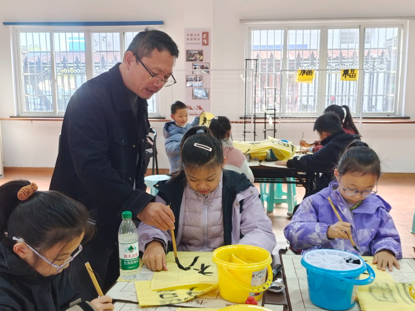 课程伊始,王志平老师挥毫泼墨,为孩子们展示了“福”字的正确写法及技巧要点。在他的悉心指导下,孩子们纷纷回到自己的座位上,认真地练习起来。每一笔、每一划,都凝聚着他们对传统文化的热爱与传承。