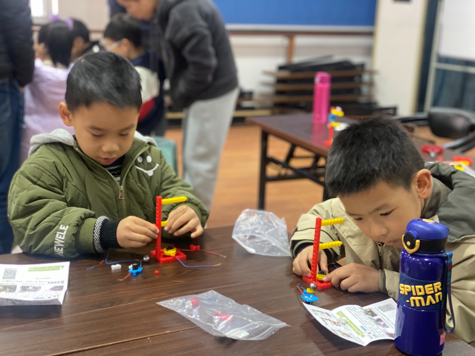在老师的指导下,孩子们开始动手搭建自己的地震警报仪。他们小心翼翼地拼接积木,认真地连接线路,每一个步骤都充满了专注与热情。当警报仪成功响起时,孩子们的脸上洋溢着自豪与喜悦的笑容。