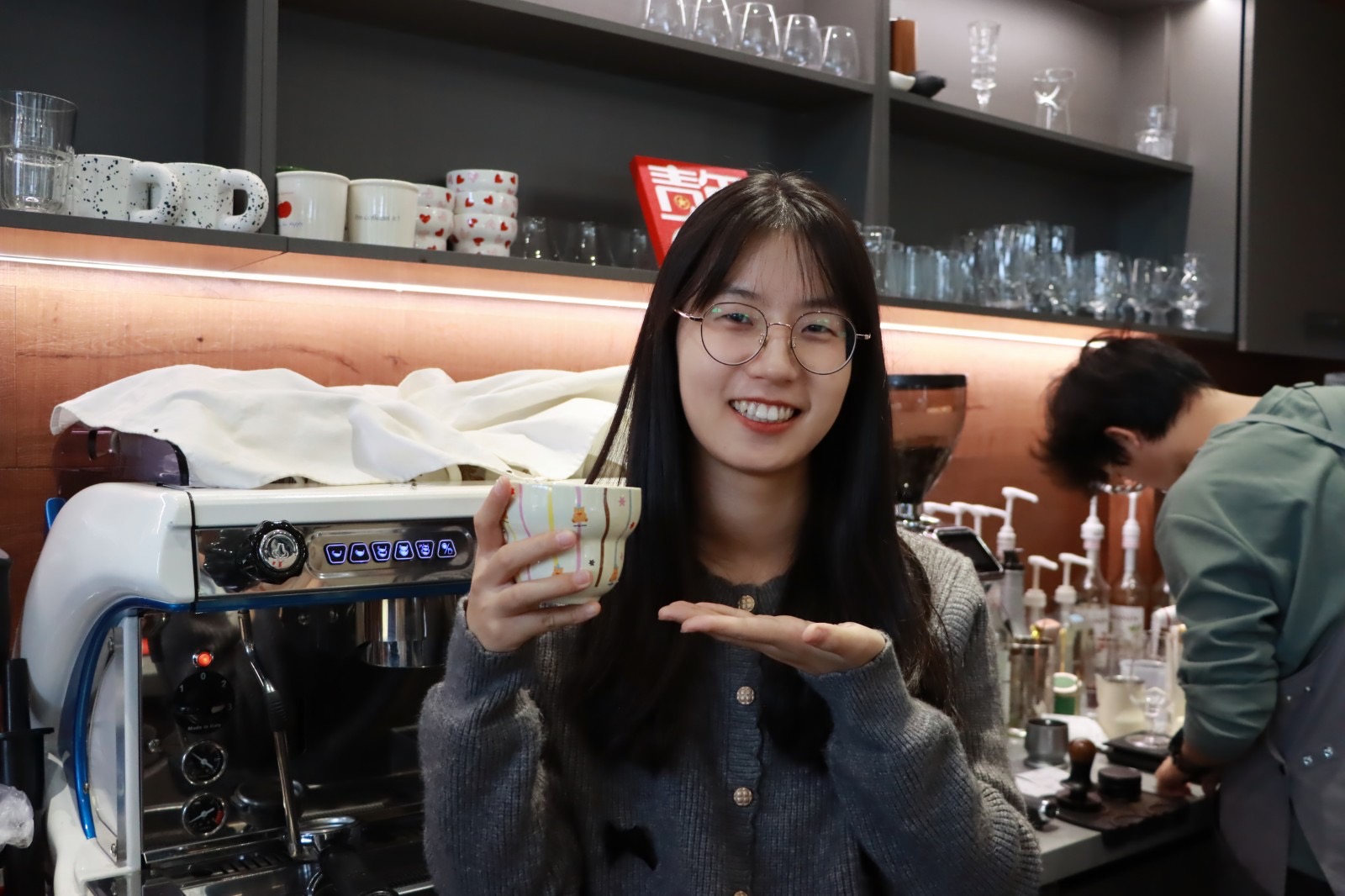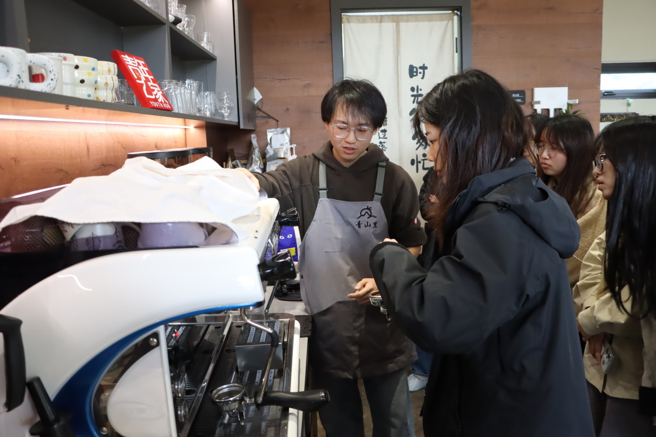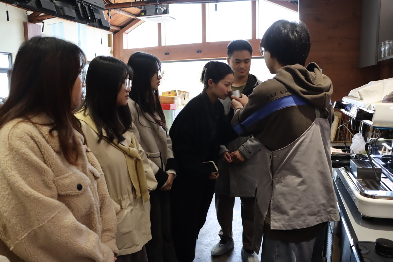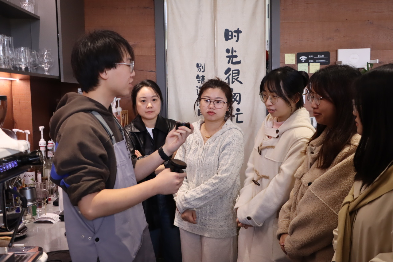 来自“青山里”茶咖的咖啡师首先为学员们介绍了咖啡豆和咖啡制作的基础知识,通过互动问答的方式为学员们答疑解惑。与咖啡豆的近距离接触,让学员们进一步理解了不同烘焙方式对咖啡豆风味的影响。