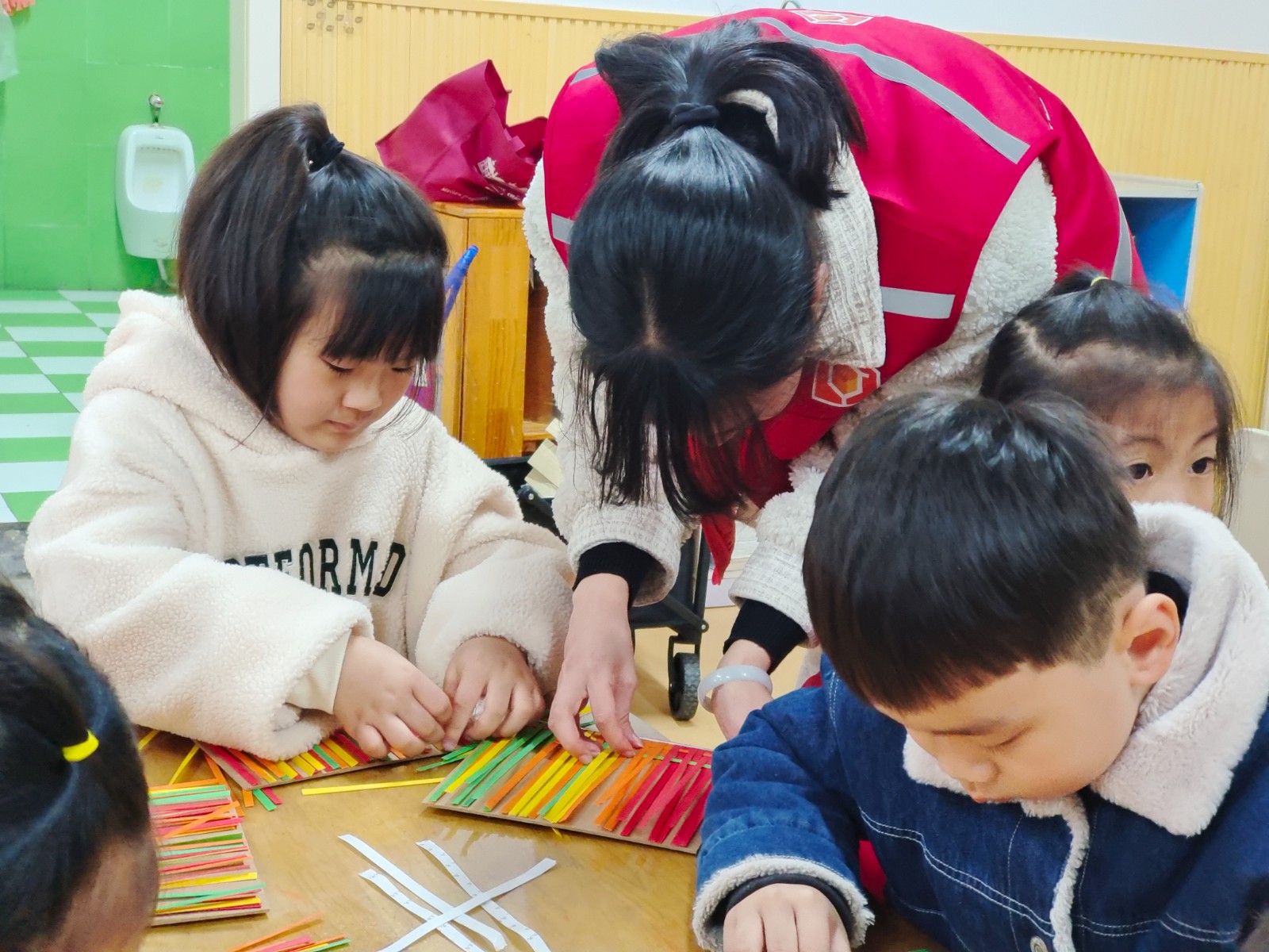 紧接着,老师以生动的语言,将竹编的历史渊源、发展脉络以及在现代生活中的广泛应用娓娓道来,激发了小朋友们对竹编文化的浓厚兴趣。在老师的示范下,孩子们亲眼见证了竹条如何在巧手中翻飞,编织出一幅幅精美的图案。在网格员、巾帼志愿者以及老师的悉心指导下,孩子们迫不及待地开始了自己的竹编画创作之旅。他们或低头沉思,构思着心中的蓝图;或三五成群,热烈讨论,分享着彼此的创意与想法。现场欢声笑语不断,孩子们的脸上洋溢着满满的成就感与喜悦。