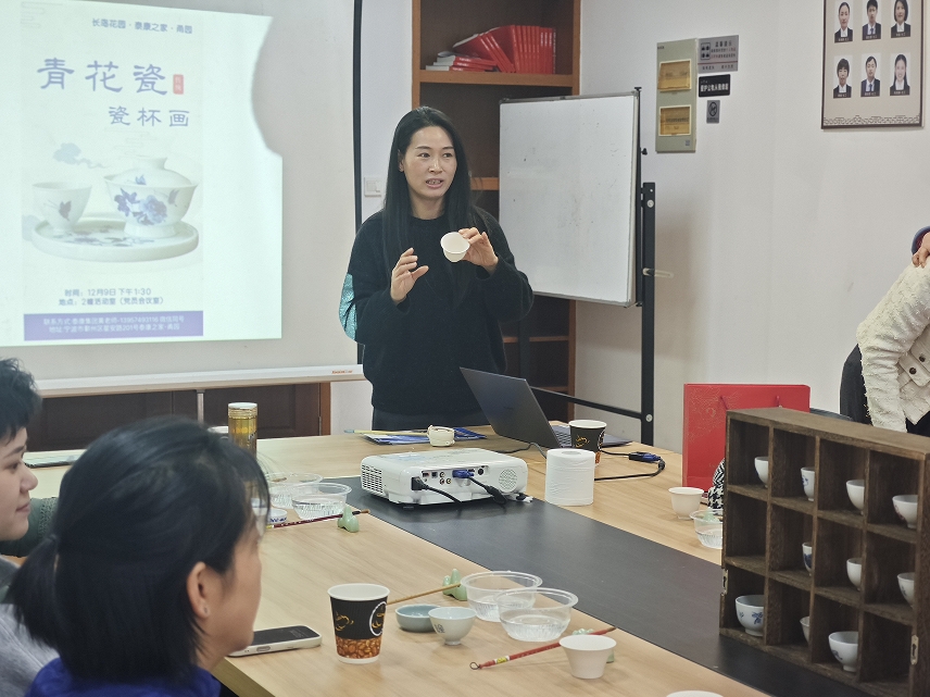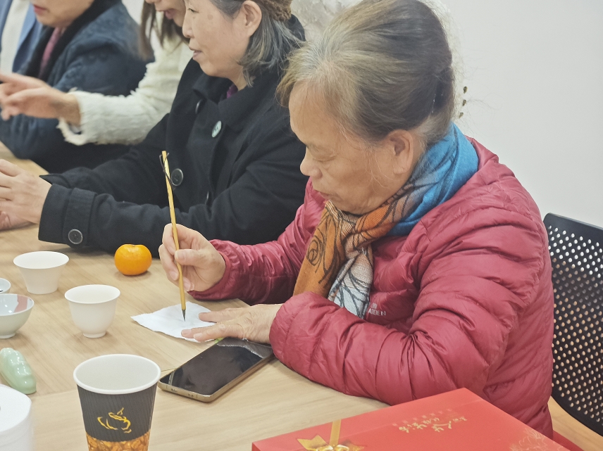 活动现场,居民们在老师的指导下亲手制作创意手工青花瓷杯画。大家自由发挥想象力,将心中的美好愿景绘制在洁白的瓷杯上,创作出独一无二的青花瓷作品。此外,活动现场还提供了新鲜水果和姜茶,让居民们在享受创作乐趣的同时,也能品尝到美味佳肴,在冬日收货一份温暖。