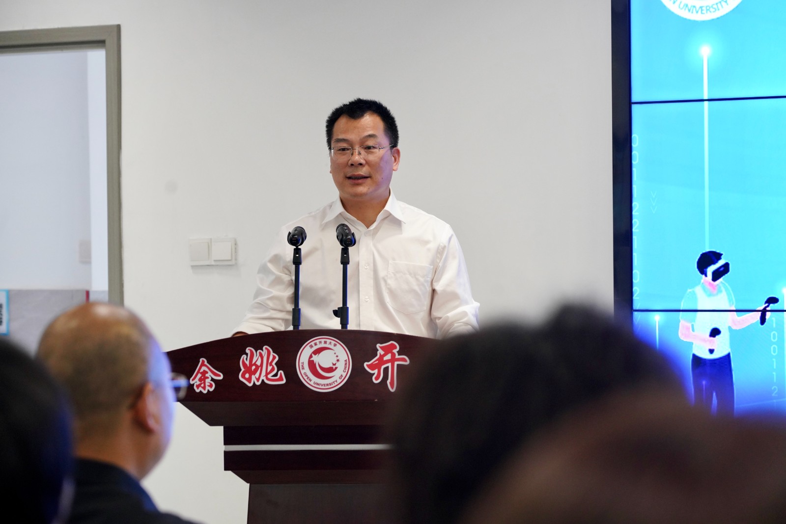 余姚学院党总支书记、校长沃其洪在开馆仪式上致辞。他提到,党的二十届三中全会对推进教育数字化,赋能学习型社会建设,加强终身教育保障作出重要部署。数智生活体验馆的建成,是余姚学院数字化推进终身教育高质量发展的重要里程碑,也是推进终身教育数字化、服务全民终身学习的创新实践。作为当前宁波赋能全民数智生活学习体验的先进场地之一,数智生活体验馆集数字化、智能化于一体,通过数智相识、数智畅游、数智随心阅、数智家居、数智健康、数智安全六个模块,展示“衣食住行”数字化智能应用,能为市民提供沉浸式的数智生活学习体验,助力市民破解生活难题、缩小数字鸿沟。