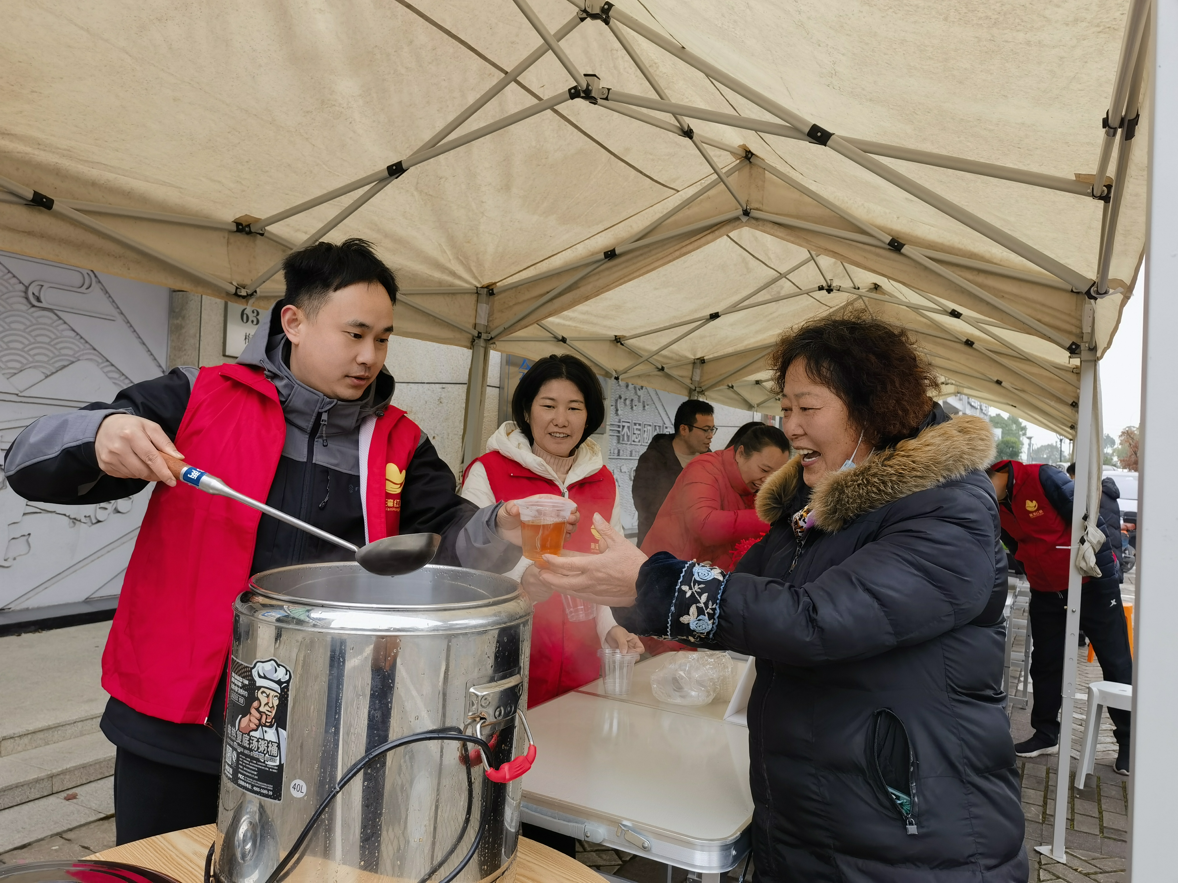 在量血压摊位前,志愿者耐心地为现场居民们测量血压,仔细询问他们的身体状况,认真解答健康疑问,并给予贴心的养生保健建议。紧邻着的是驱寒姜茶摊位,热气腾腾的姜茶散发着浓郁的香气,志愿者们热情地将一杯杯姜茶递到过往居民的手中,那辛辣而又温暖的口感驱散了冬日的严寒,让他们在寒冷的天气中感受到了来自集市的浓浓暖意与诚挚关怀。配钥匙和家电维修摊位则为居民们解决了生活中的实际难题,师傅们工具齐全,认真为居民们配钥匙、修理各种家电。