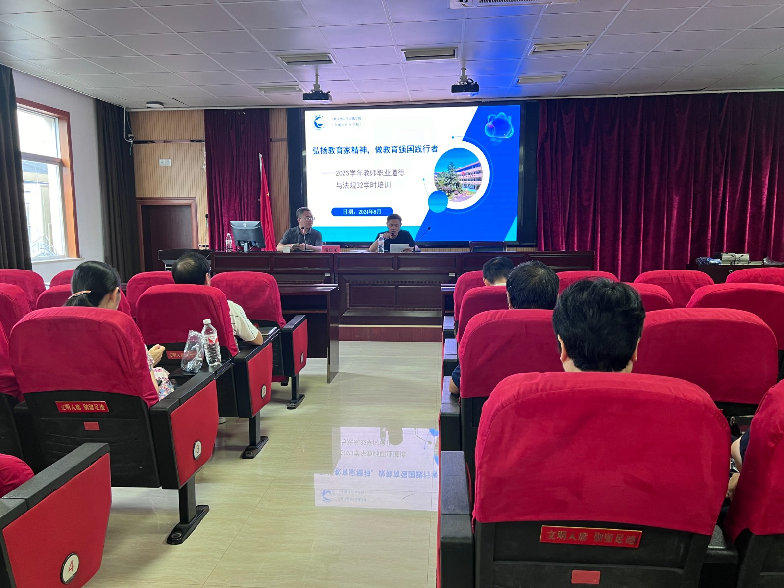 本次培训以“弘扬教育家精神,做教育强国践行者”为主题,聚焦教师职业道德、法律法规、数字素养、心理健康、终身教育最新发展研究等内容,邀请了各领域多位教授与专家前来授课。
