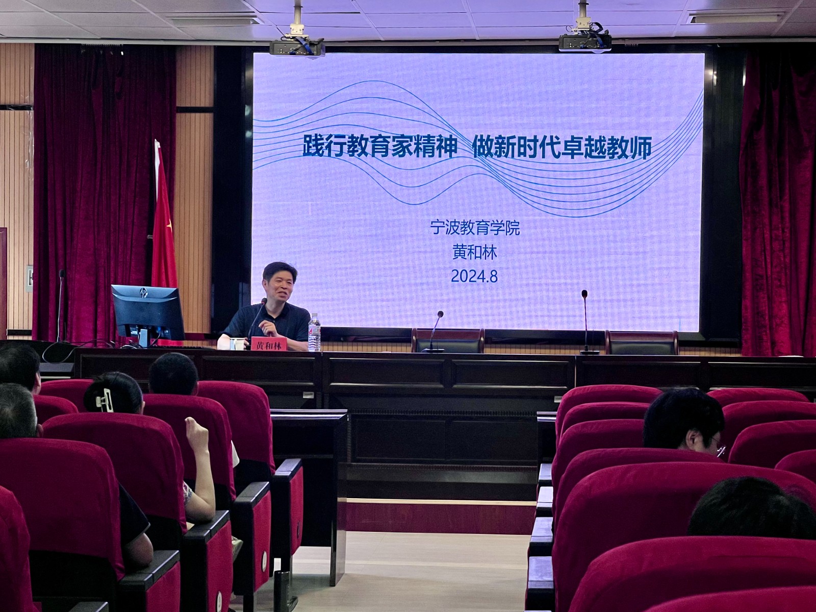 宁波教育学院教育培训学院院长黄和林教授的讲座以《践行教育家精神  做新时代卓越教师》为题,结合丰富的案例与工作经验,深入阐述了新时代弘扬教育家精神的背景,深刻解读了教育家精神的内涵,并向广大教师就如何践行教育家精神、做新时代卓越教师指出了具体可行的实践方向。