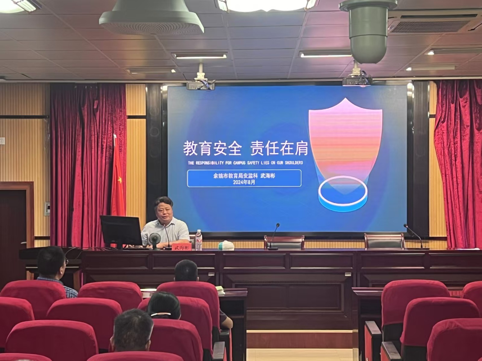 余姚市教育局安全监督管理科武海彬科长以《教育安全 责任在肩》为题,针对校园安全做了专题讲座。通过大量发生在身边的安全工作案例,老师们深刻意识到校园安全的重要性及当前形势的严峻性,纷纷表示要将安全责任时时刻刻铭记于心。