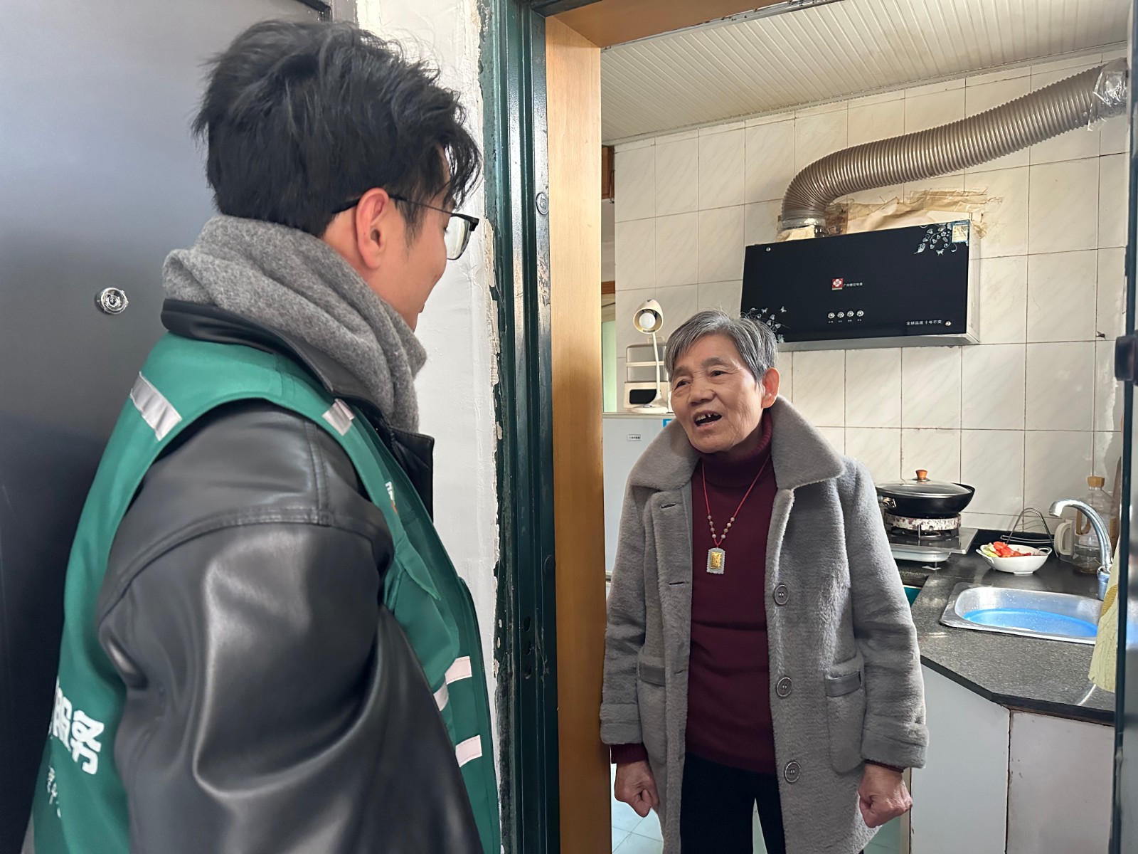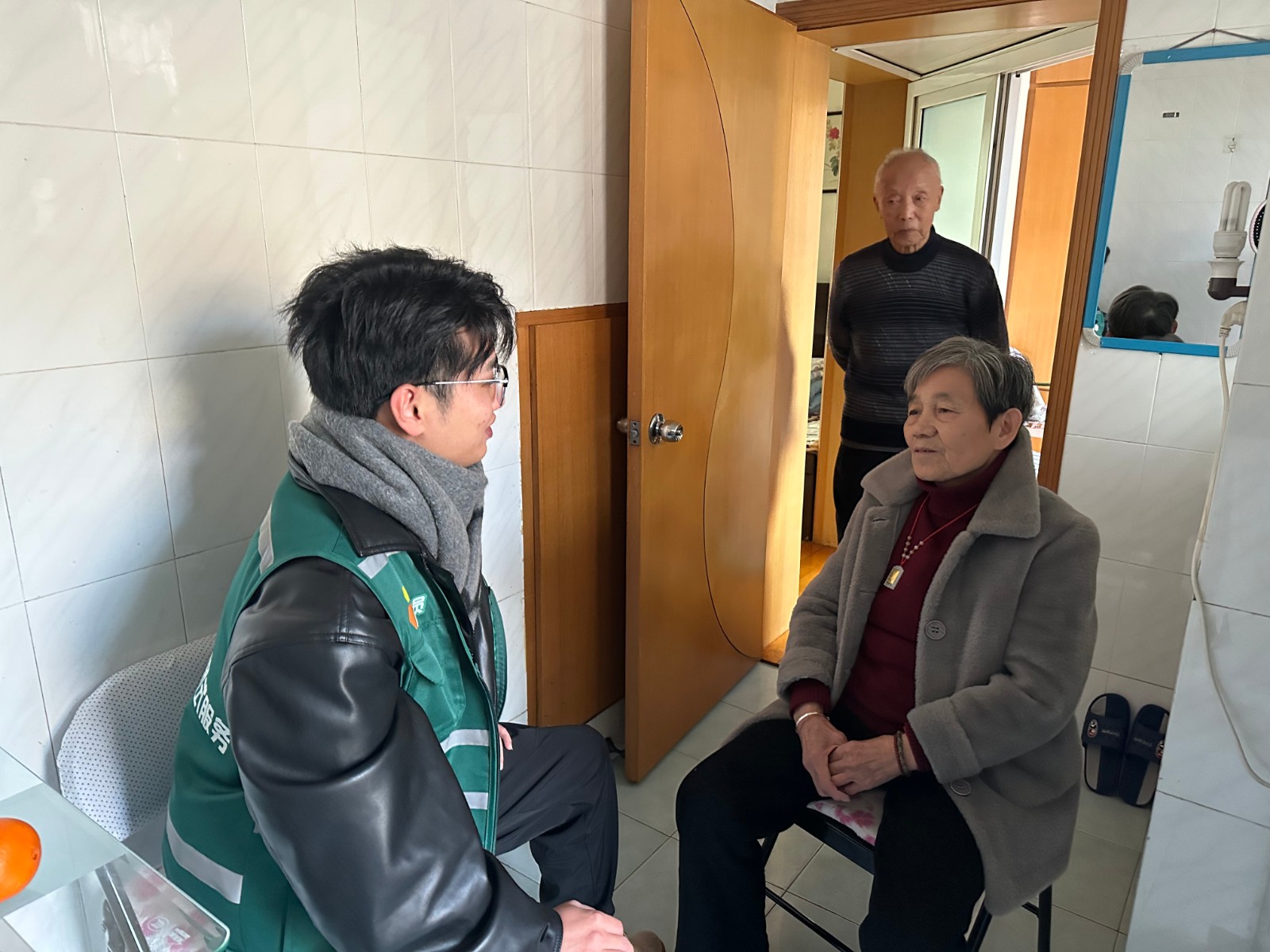 同时,网格员盛智聪也深入308室,对老奶奶表示了深切的关怀,并承诺会尽快解决噪音问题,让她能够安心休息。为了从根本上解决问题,网格员盛智聪还提议在两家之间安装隔音材料,以物理方式隔绝噪音,这一建议得到了双方的认可。