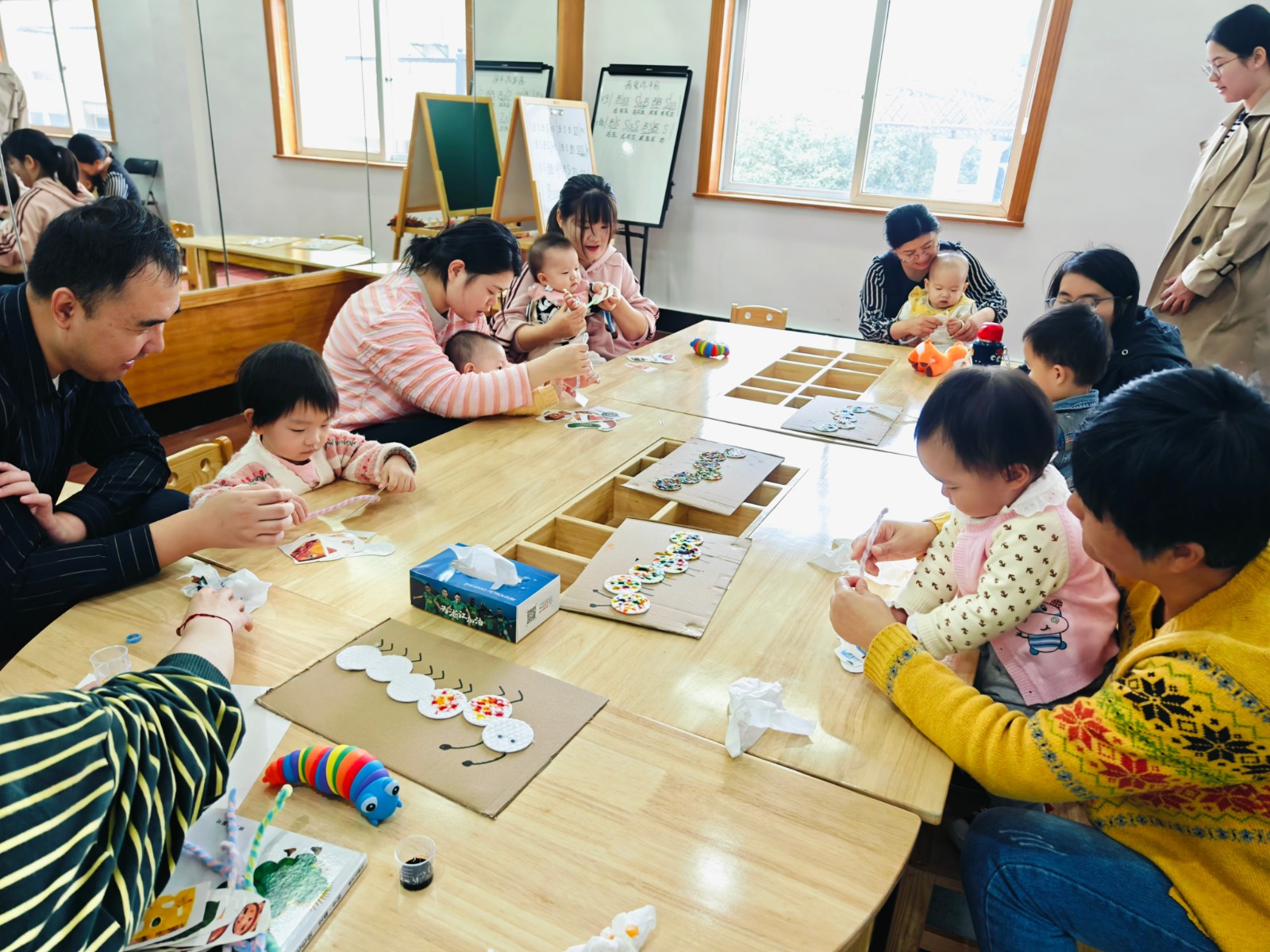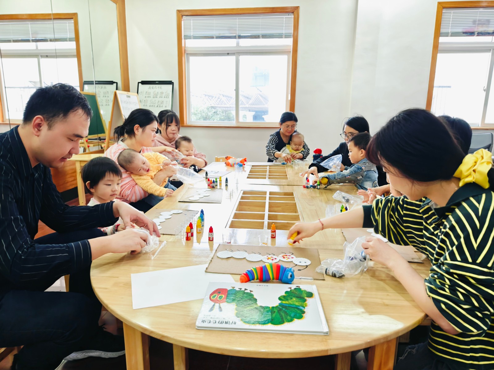 在老师的带领下,孩子们通过绘本《好饿的毛毛虫》阅读,走进了毛毛虫的奇妙世界。老师声情并茂地讲述着毛毛虫的故事,孩子们聚精会神地聆听,仿佛自己也变成了那只小小的毛毛虫,经历着成长与蜕变。活动还设置了毛毛虫食物精细动作训练以及彩色毛毛虫绘制等环节,孩子们在轻松愉快的氛围中,不仅锻炼了身体协调性,还培养了专注力、观察力和创造力。