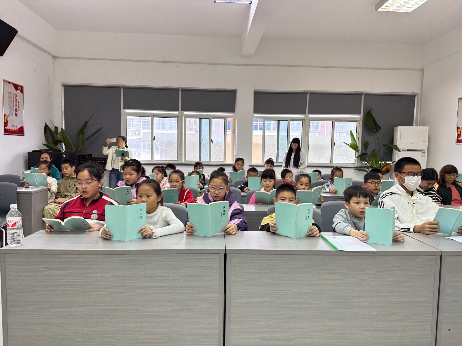 “我要用蓝色的丝线,绣上我大海的辽阔,让中国,走向世界,让世界,走进中国。”老师以一首诗作《锦绣》调动起孩子们的积极性,孩子们在老师的带领下,用稚嫩而坚定的声音诵读经典。从古典诗词到优美散文,他们或激昂澎湃,或婉转悠扬,将一篇篇经典作品演绎得淋漓尽致。