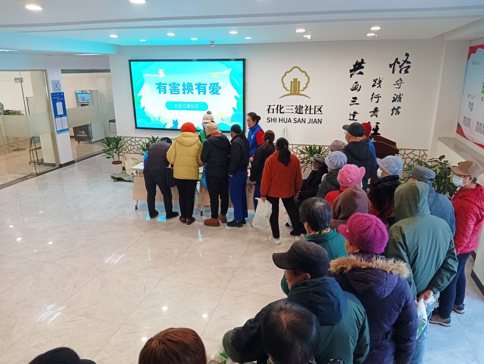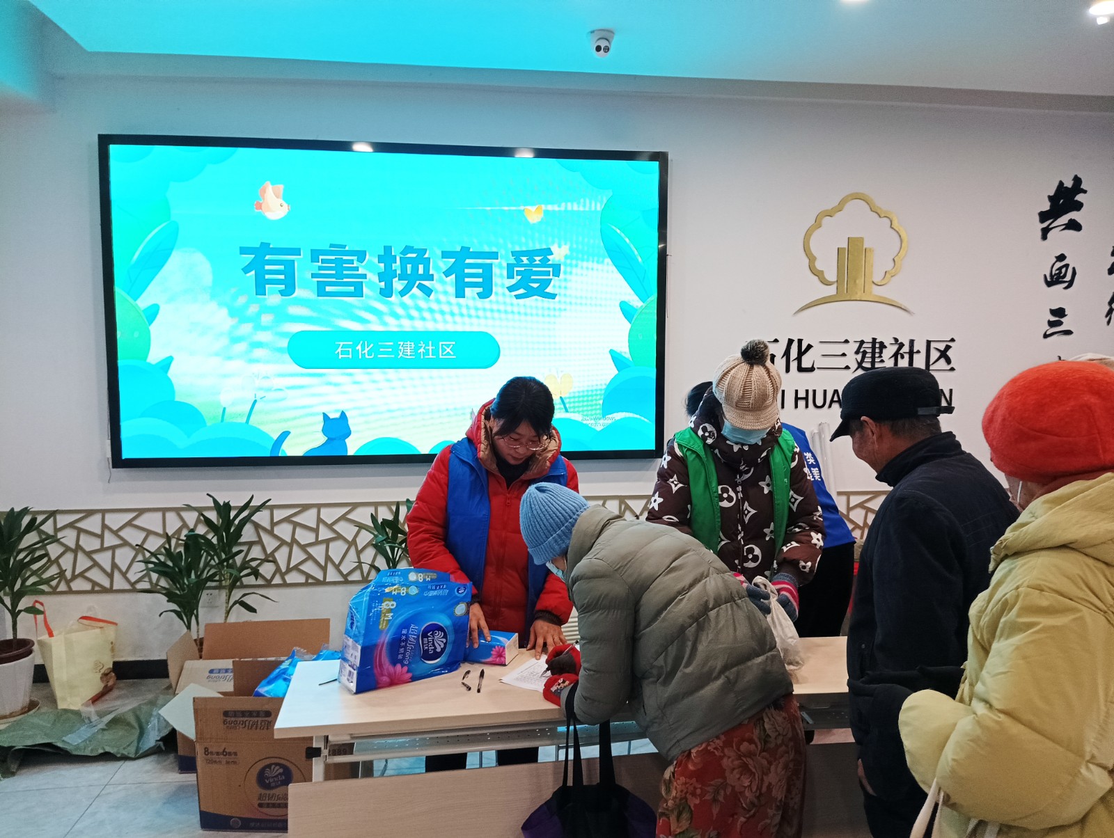 为进一步提升居民对垃圾分类的参与度和有害垃圾产生危害的认知度,12月20日上午,石化三建社区开展垃圾分类“有害换有爱”活动,提高资源利用率,助力环境更美好。