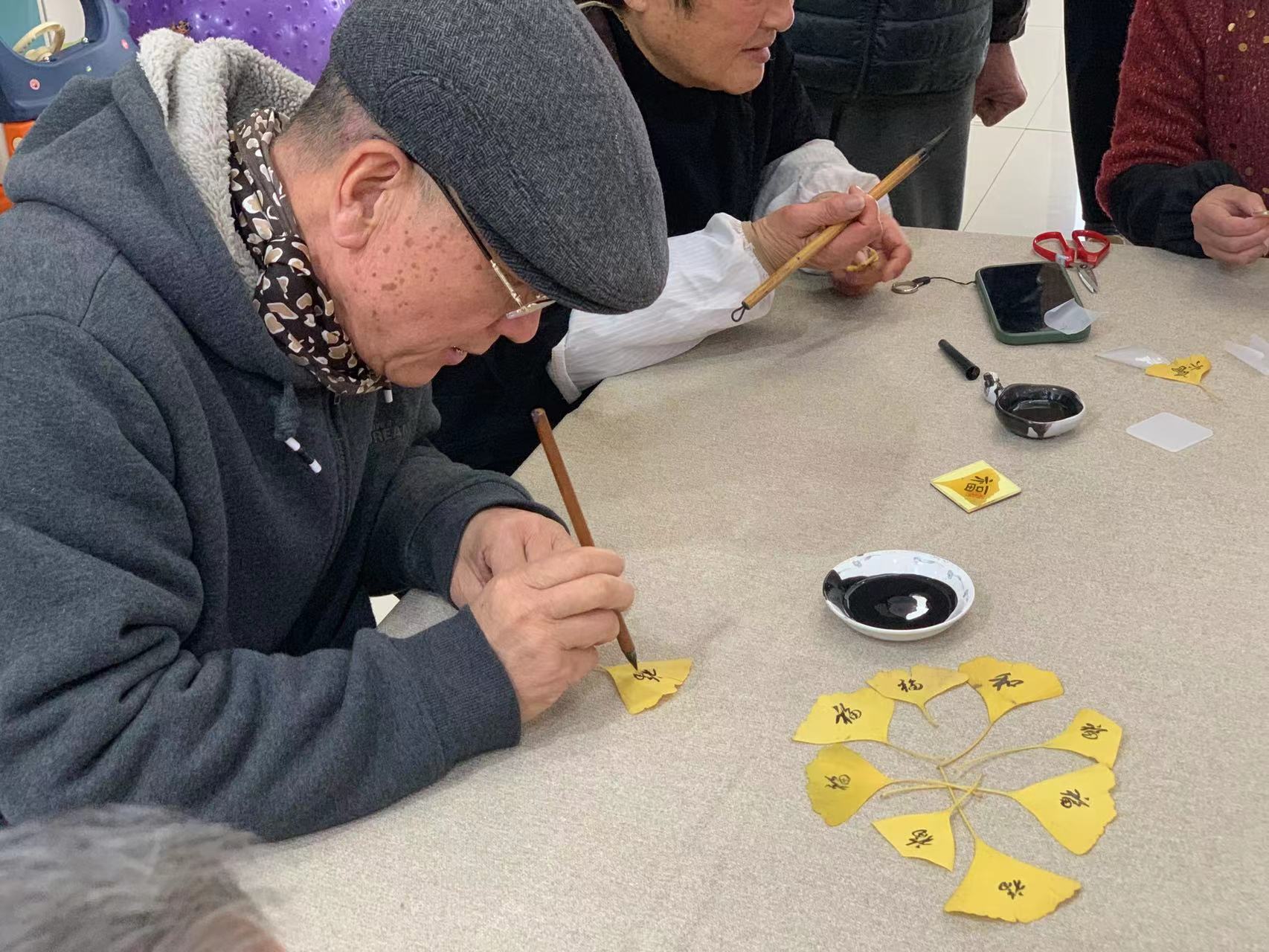 12月19日,霞浦成校老年大学书画班联合百灵社区翰墨轩书画协会成员开展了一场“银杏叶上舞墨飞白”活动,以大自然馈赠的银杏叶为载体,创作出一系列精美绝伦的书法冰箱贴,开启一段不同寻常的艺术之旅。                                一片片金黄的银杏叶铺陈在桌面上,宛如待书写的古卷。书画爱好者们手执毛笔,蘸取黑墨,轻点慢划,在薄薄的叶片上留下苍劲有力的汉字。每一片叶子都是独一无二的画布,每一次落笔都是对美的极致追求,当传统书法遇上自然元素,古典韵味与现代审美完美融合,每一幅作品都是艺术与自然的奇妙邂逅。