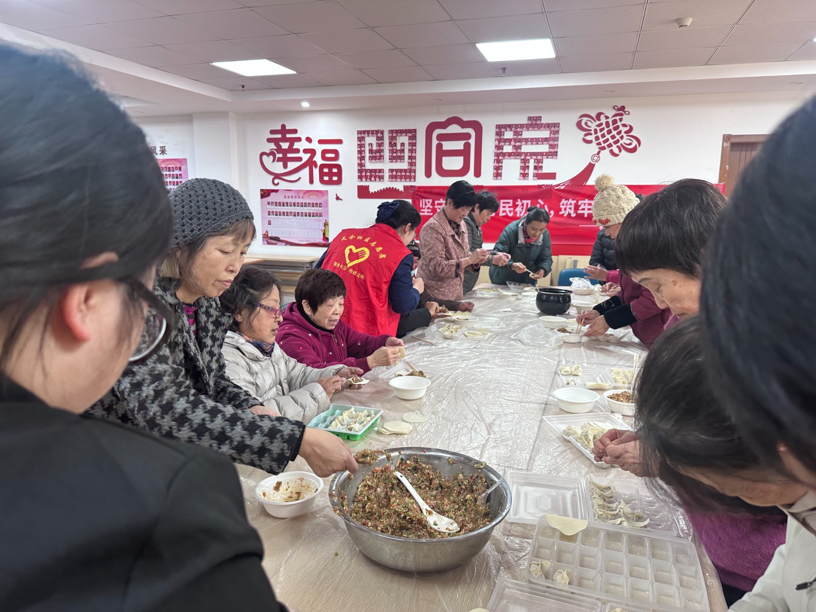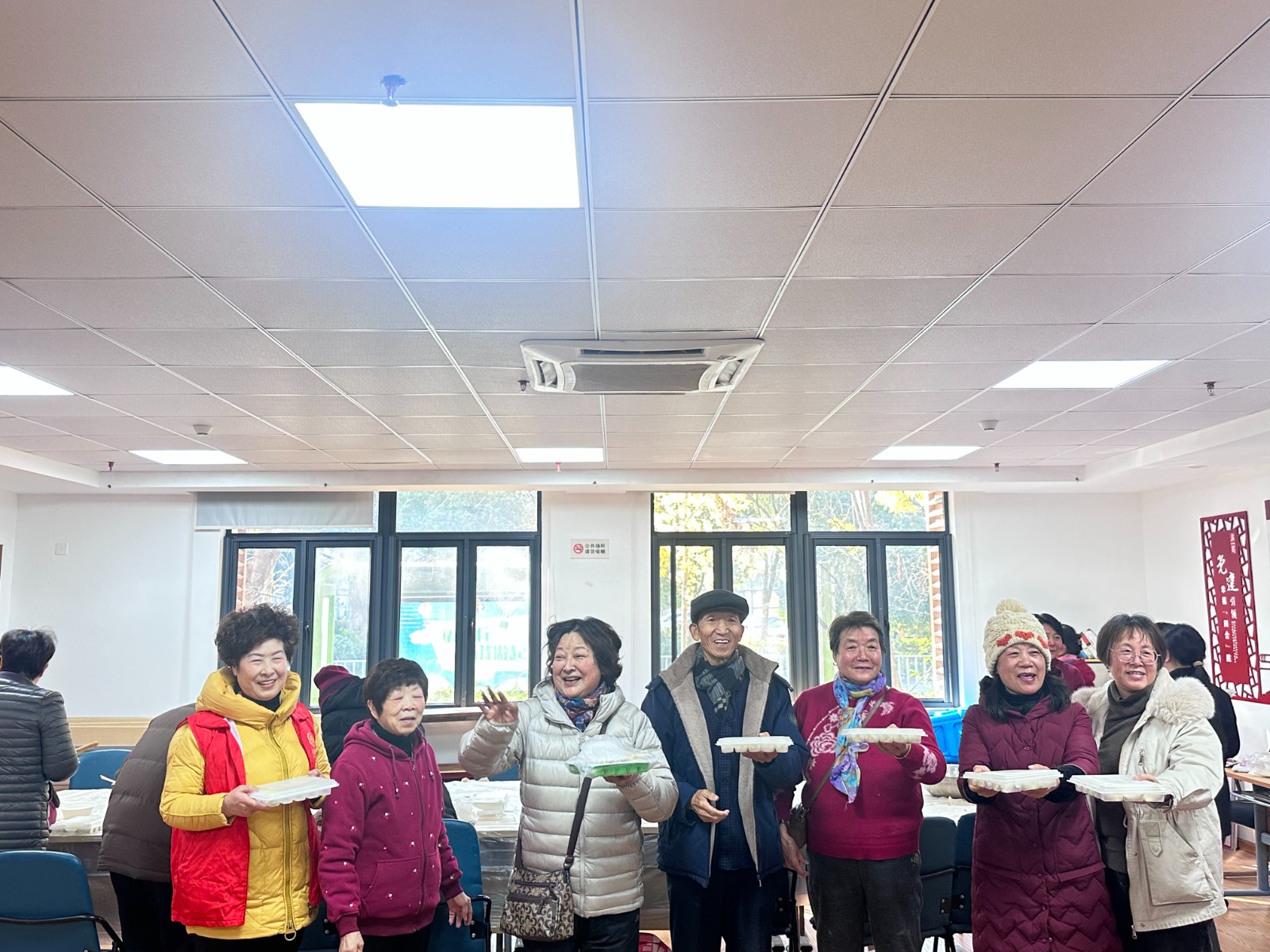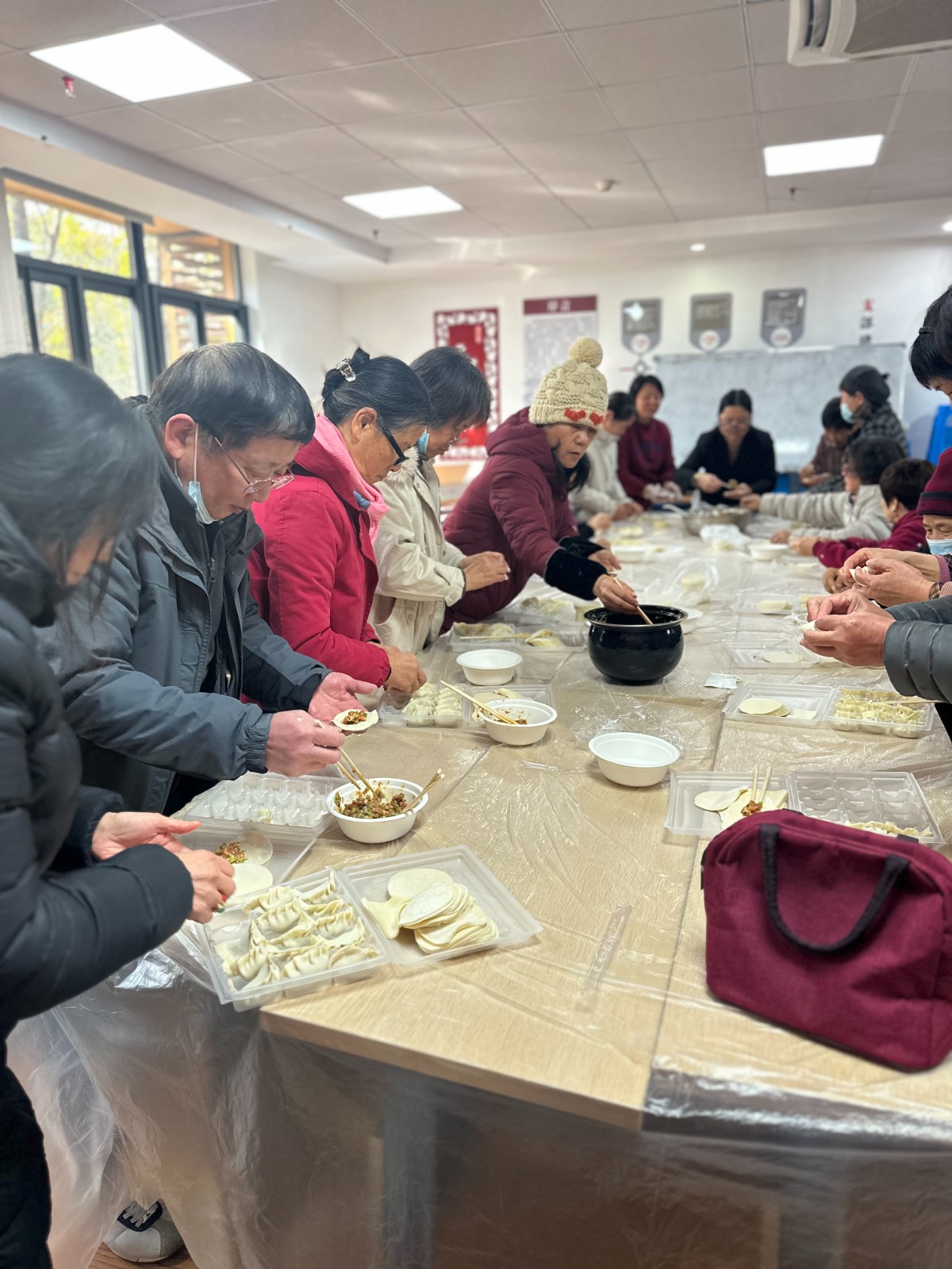 活动伊始,社区工作人员和志愿者们早早地准备好了包饺子的食材和工具。居民们围坐在一起,一边聊着家常,一边动手包饺子。现场欢声笑语不断,大家相互学习包饺子的技巧,分享着各自的冬至习俗,共同感受着节日的温馨氛围。同时,社区志愿者们也准备为新兴职业群体送去冬日温暖。在欢声笑语中,一个个饺子逐渐摆满了案板。