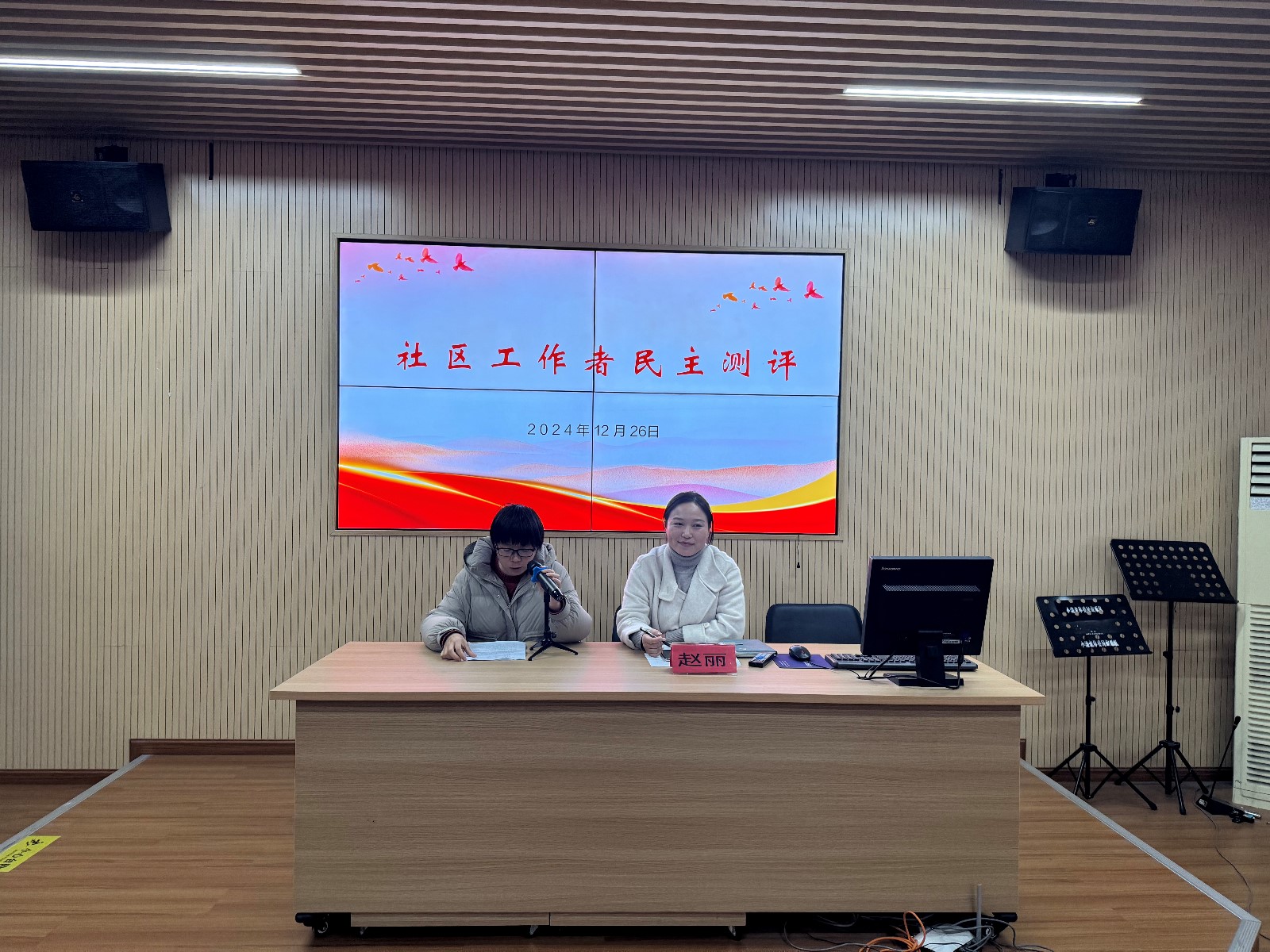 会上社区党支部书记赵丽与在座的党员、两委班子成员、居民代表、业委会代表介绍了2024年社区工作总结及2025年的创建工作。不断深化睦邻青墩品牌,号召大家共同参与到未来社区的建设中来。随后,社区工作者就2024年工作向大家进行述职汇报,开展民主评议。与会居民代表根据个人表述认真填写《2024年度青墩社区工作人员考核民主测评表》,对每名社区工作人员进行客观、公正、全面的评价