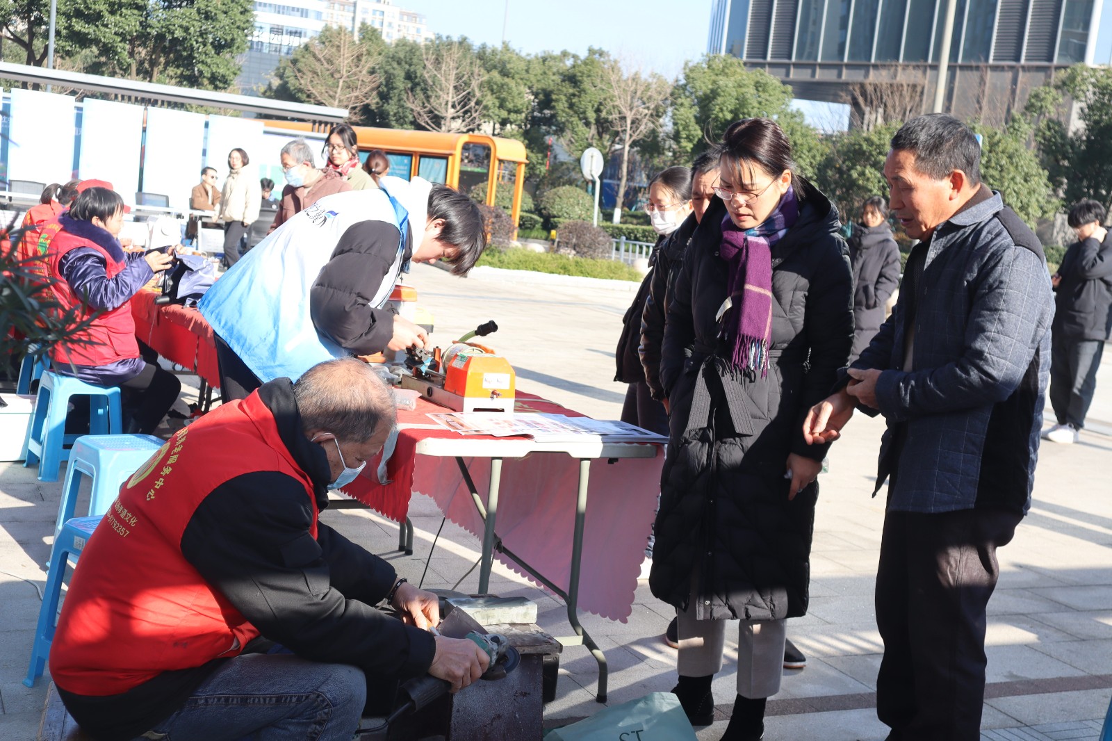 活动现场,便民项目众多。磨刀区,50多把待磨的菜刀、剪刀和围拢的居民可见人气,来自宁波市友爱青年养老服务中心的志愿者团队摆起磨刀石,动作娴熟地用磨刀器细细打磨剪刀和菜刀,不一会儿就把刀打磨得锃亮,焕然一新,同时还耐心地叮嘱,为居民介绍生活小技巧;在缝纫区,在缝纫志愿者细致入微地为居民缝补的同时,另外还有来自社区的青年团员们则与居民话家常。